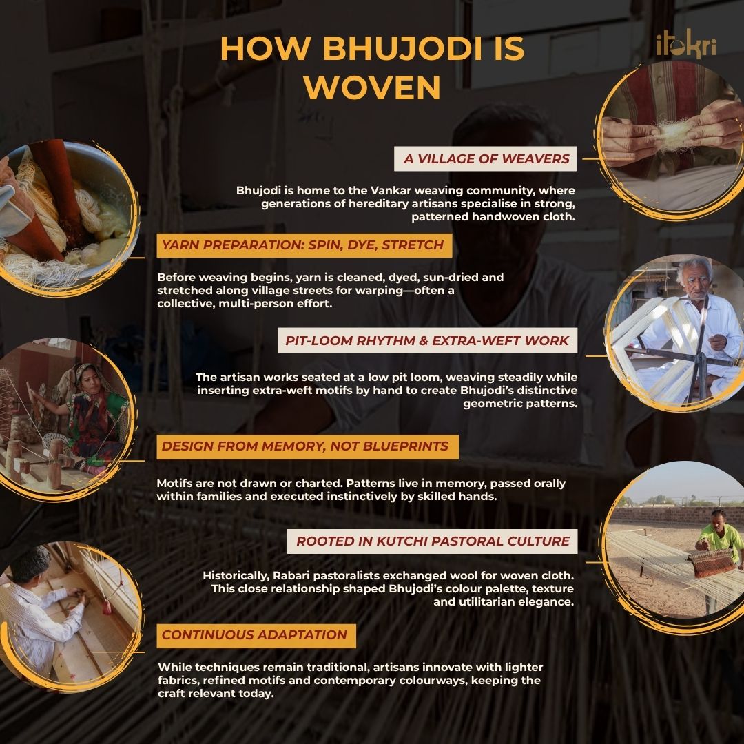 Authentic Bhujodi weaves by Tabhani’s, rooted in Kutch’s rich handloom traditions.