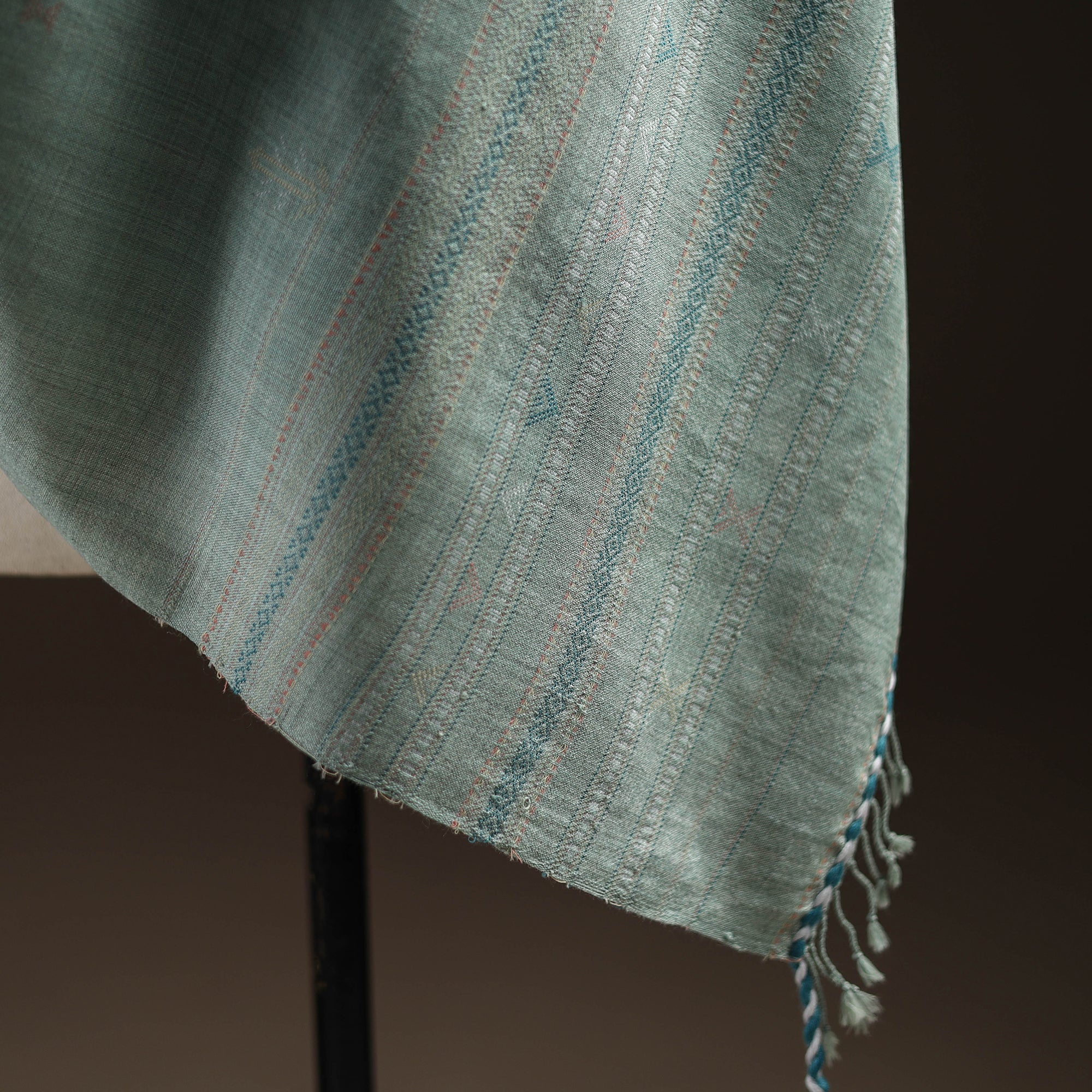 Kutch bhujodi handwoven shawl crafted by skilled artisan Vankar Bhimji Kanji from Bhuj Gujarat. Adorned with intricate Kutchi motifs and tassle. Made from merino wool it offers both warmth and comfort. A perfect blend of tradition and style ideal for daily winter wear.