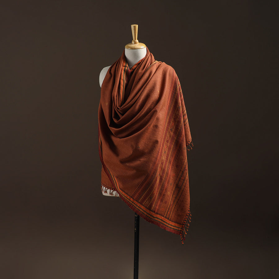 Kutch bhujodi handwoven shawl crafted by skilled artisan Vankar Bhimji Kanji from Bhuj Gujarat. Adorned with intricate Kutchi motifs and tassle. Made from merino wool it offers both warmth and comfort. A perfect blend of tradition and style ideal for daily winter wear.