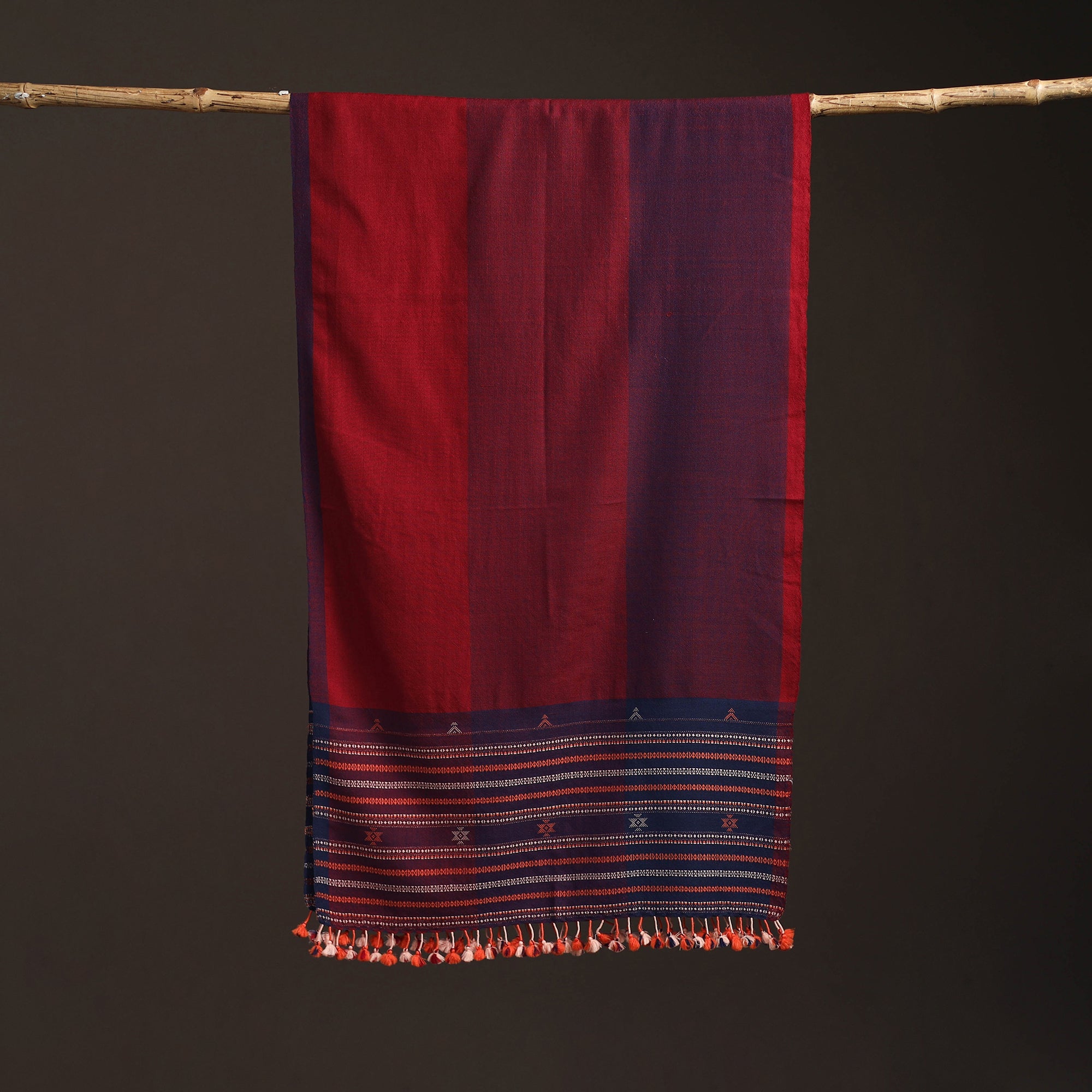 Multicolor bhujodi stole handwoven by Vinay Siju in Bhuj, Gujarat. Designed with traditional Kutchi motifs and tassels. Made from merino wool to provide reliable warmth. A practical choice for everyday winter wear or outings.