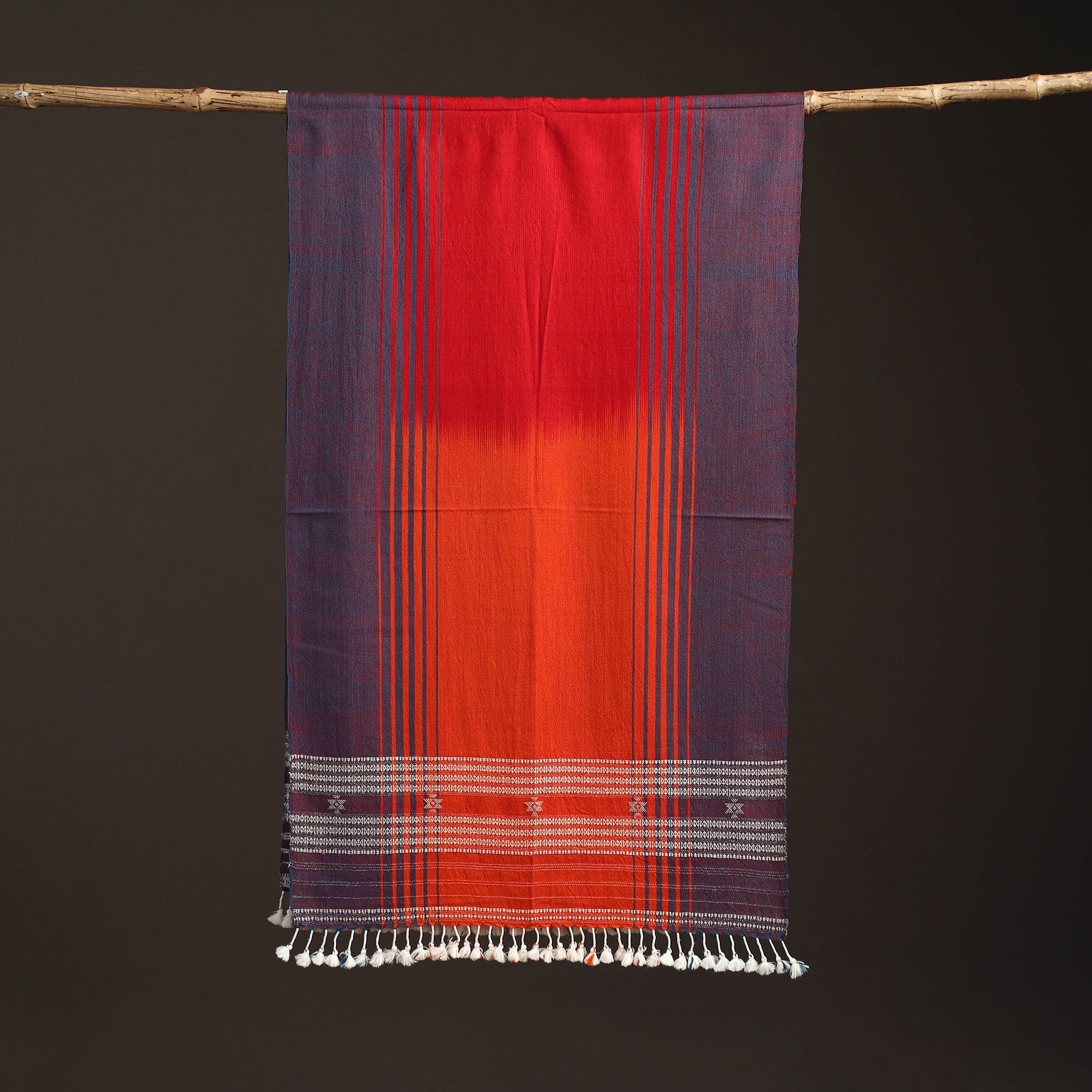 Multicolor bhujodi stole handwoven by Vinay Siju in Bhuj, Gujarat. Designed with traditional Kutchi motifs and tassels. Made from merino wool to provide reliable warmth. A practical choice for everyday winter wear or outings.