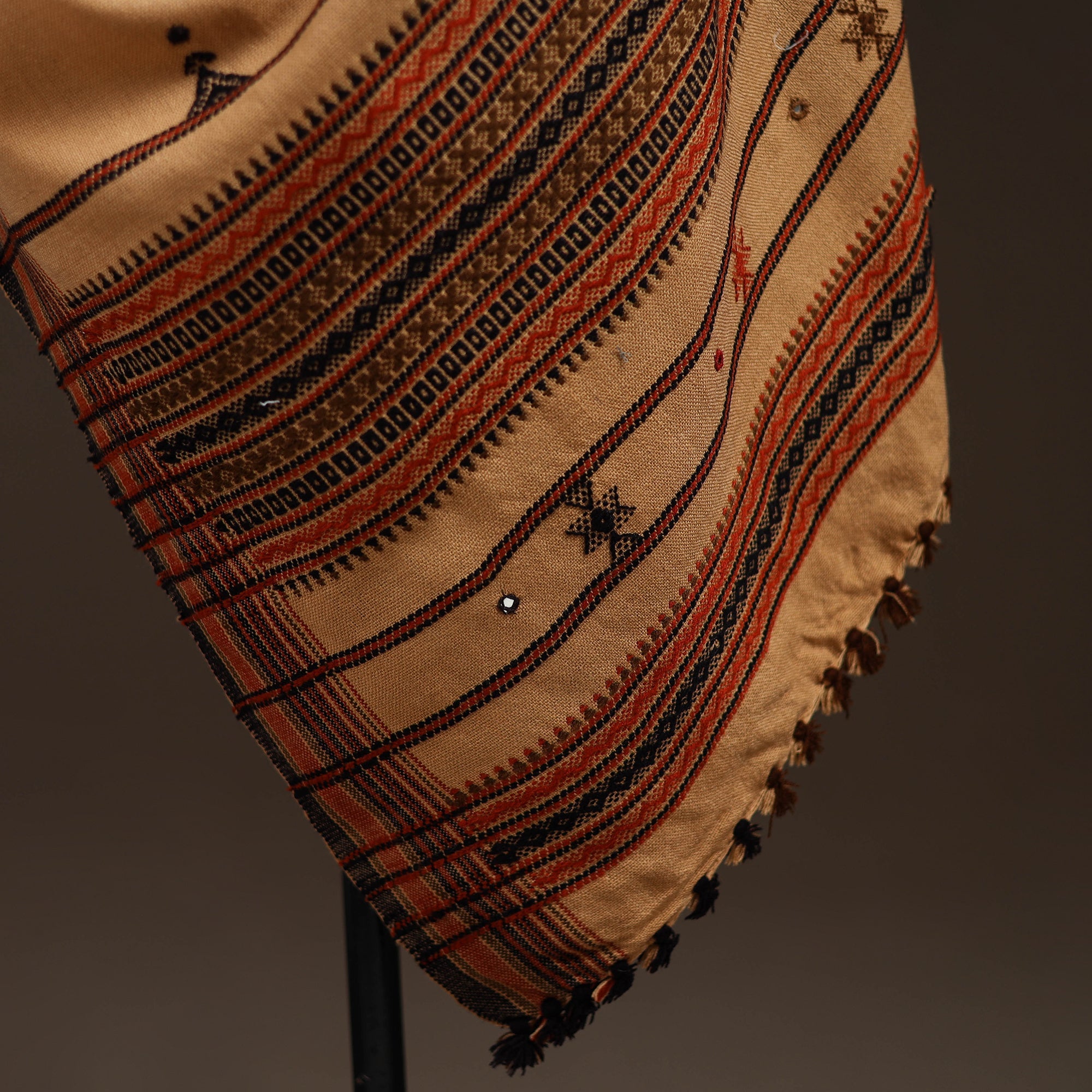 Kutch bhujodi handwoven shawl is thoughtfully created by skilled artisans from Kutch, Gujarat. Adorned with traditional mirror work and intricate Kutchi motifs, it is made from acrylic wool that offers both warmth and comfort. A perfect blend of tradition and style, it is ideal for everyday elegance or occasion wear.