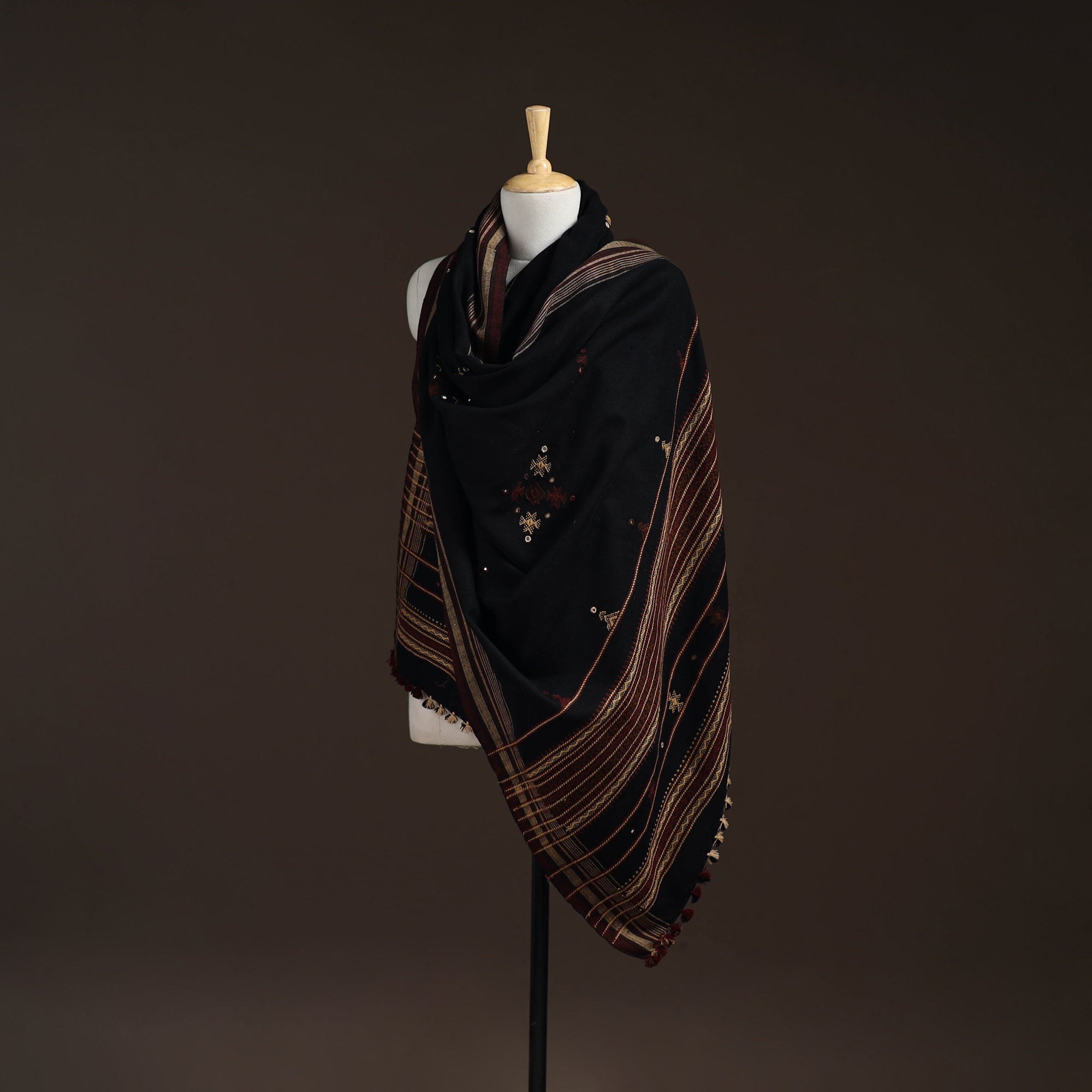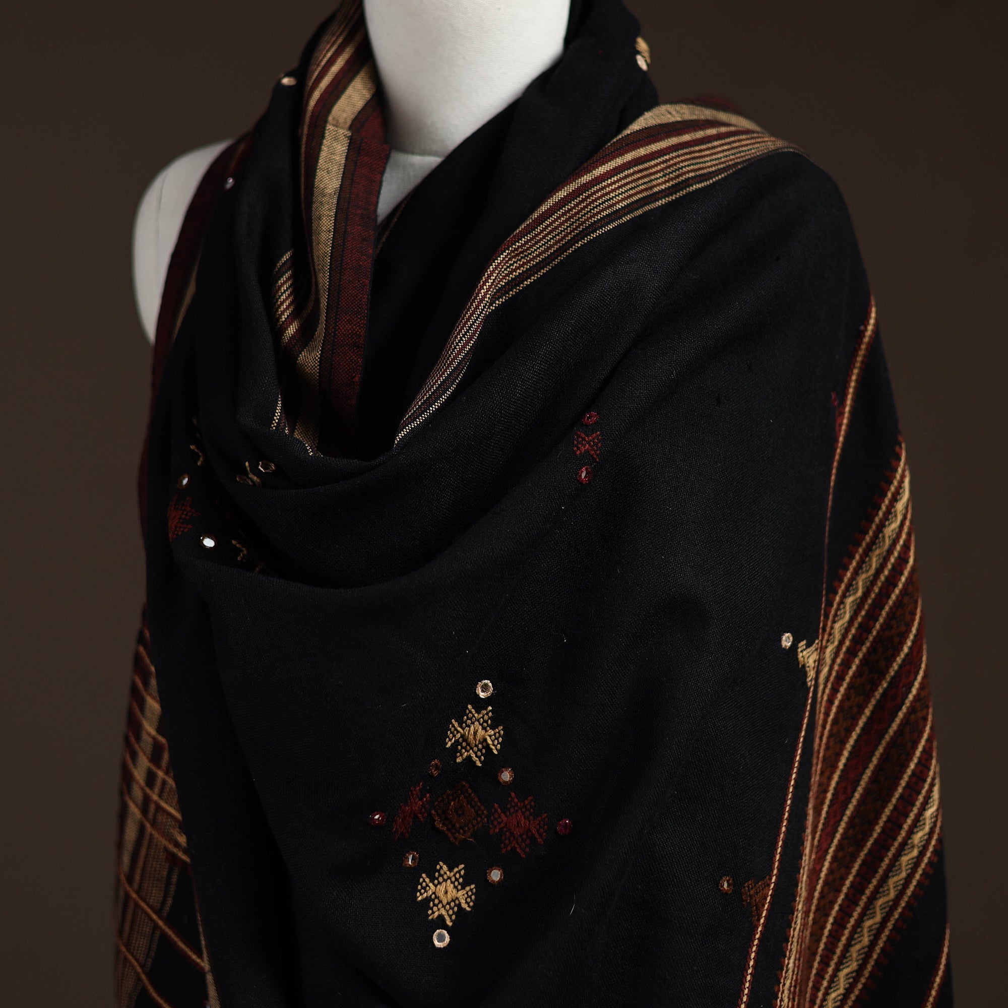 • Kutch bhujodi handwoven mirror work acrylic wool shawl 31