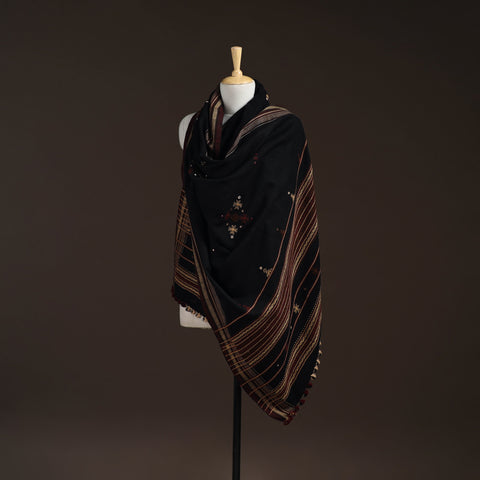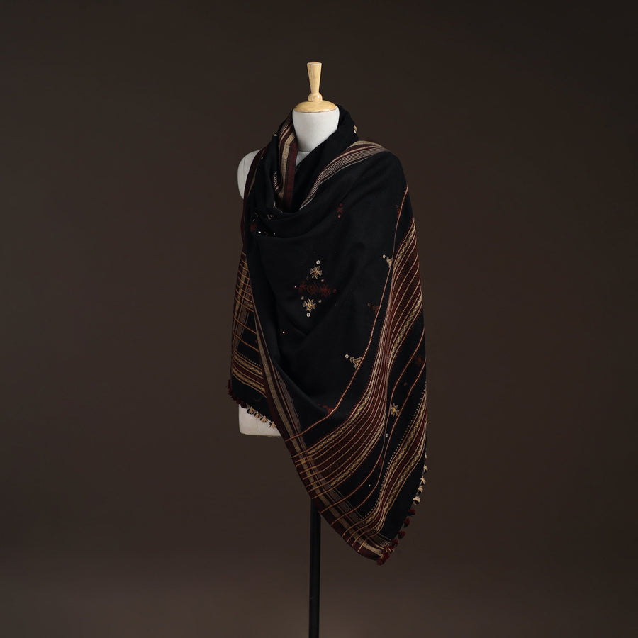 Kutch Bhujodi Handwoven Mirror Work Acrylic Wool Shawl 31