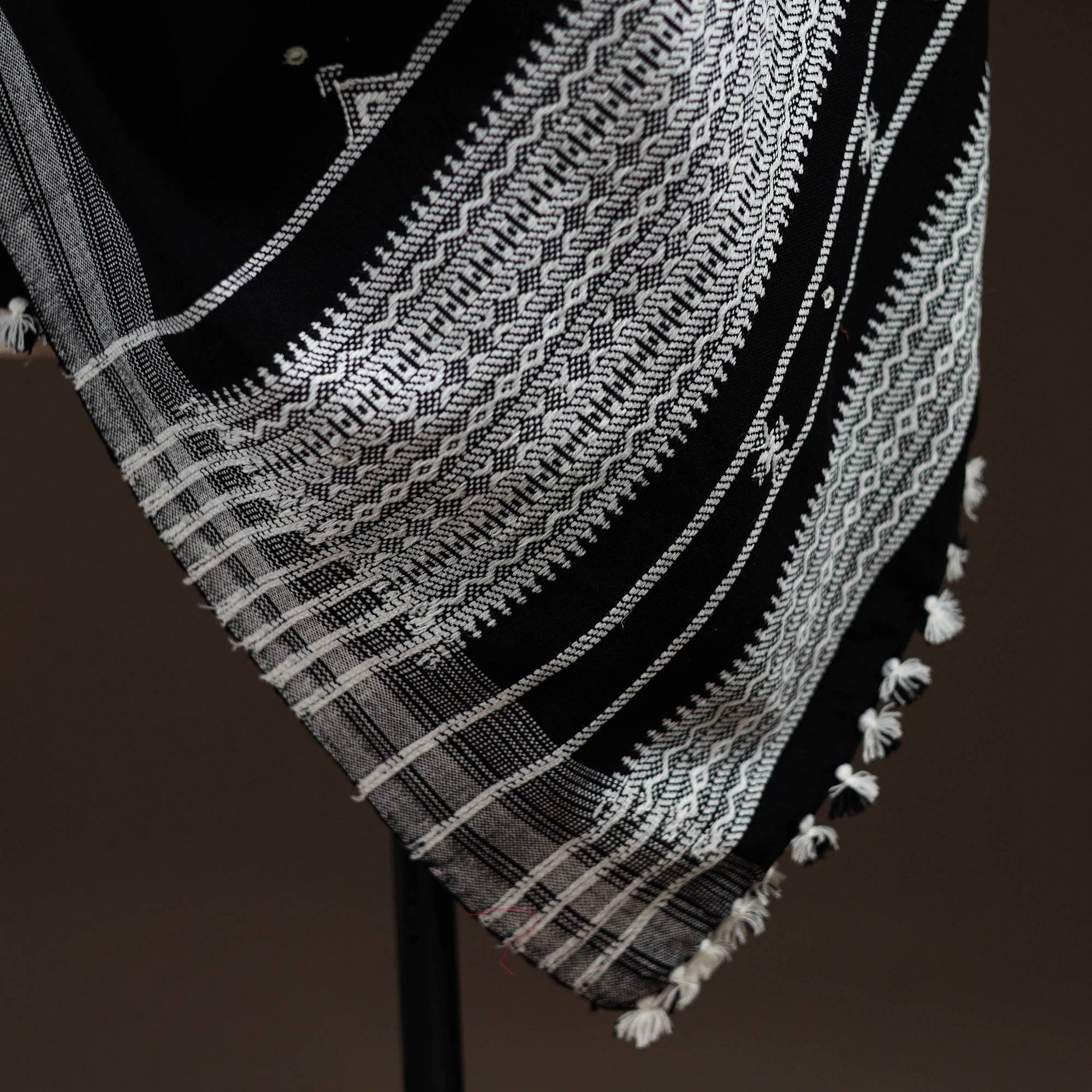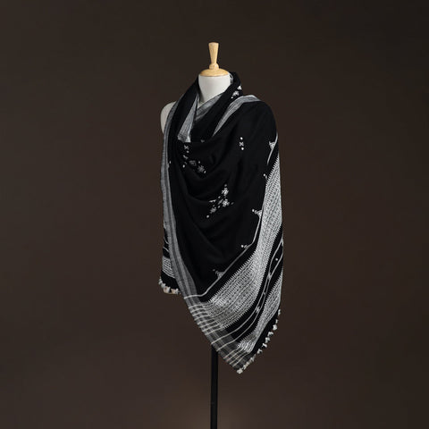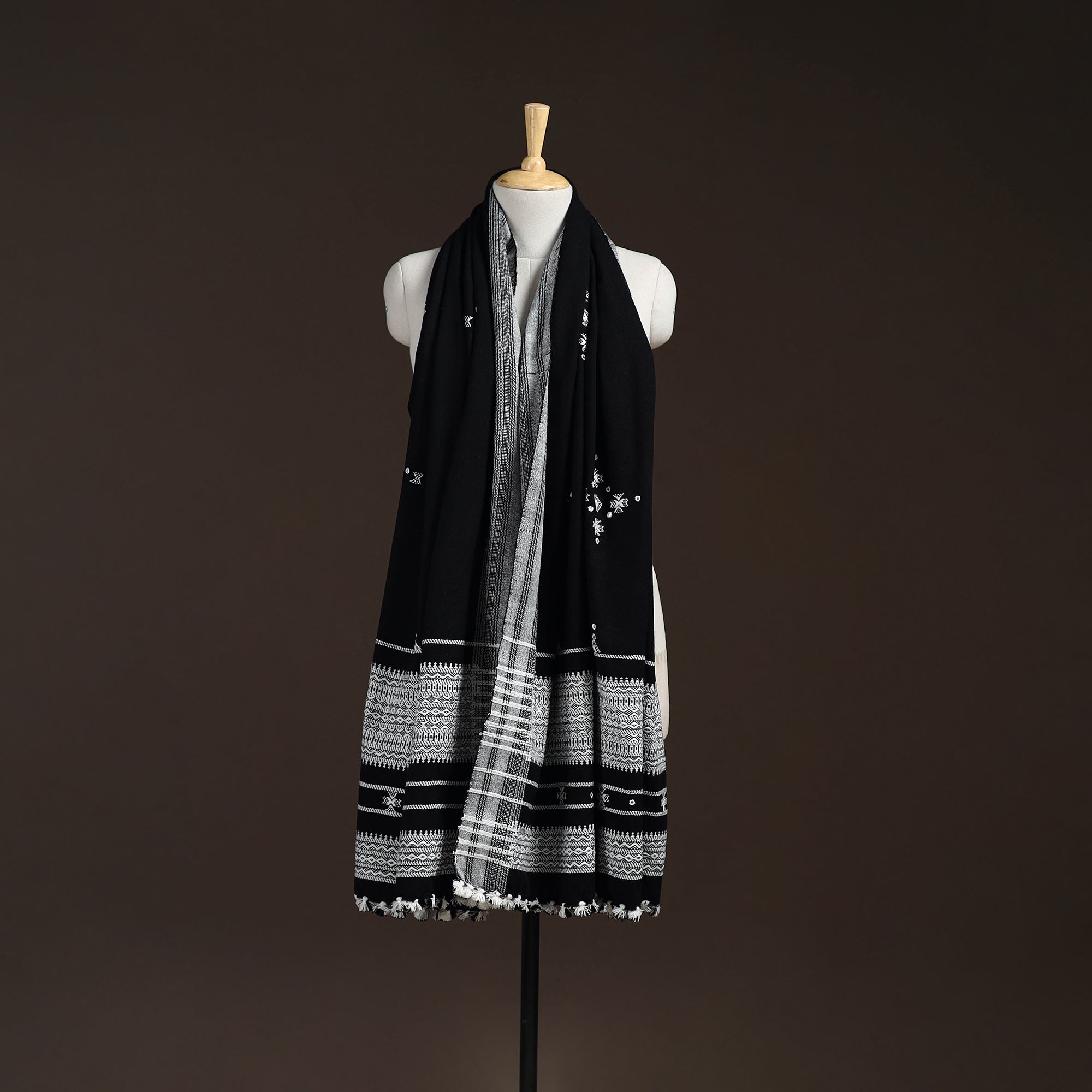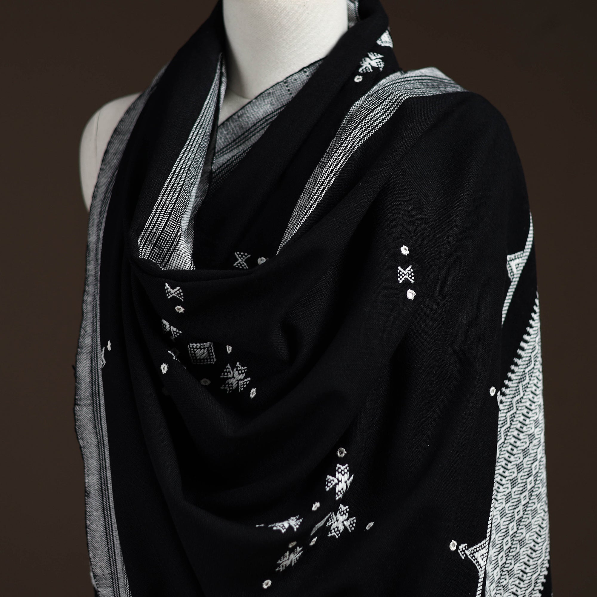Kutch bhujodi handwoven shawl is thoughtfully created by skilled artisans from Kutch, Gujarat. Adorned with traditional mirror work and intricate Kutchi motifs, it is made from acrylic wool that offers both warmth and comfort. A perfect blend of tradition and style, it is ideal for everyday elegance or occasion wear.