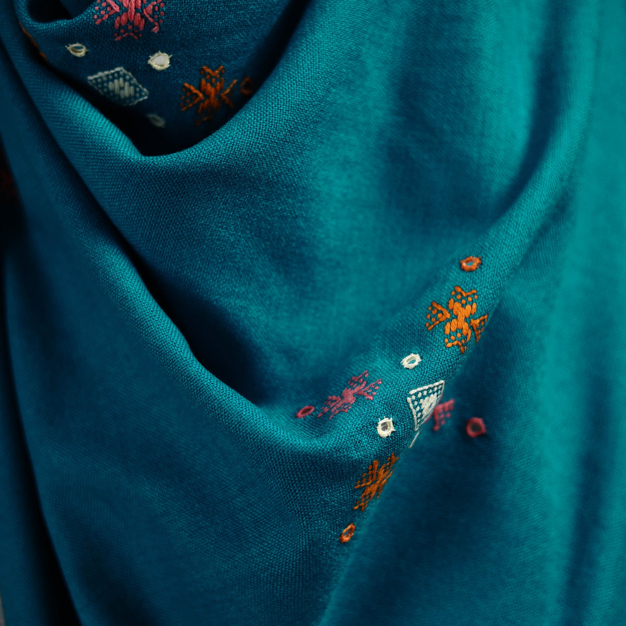 • Kutch bhujodi handwoven mirror work acrylic wool shawl 39