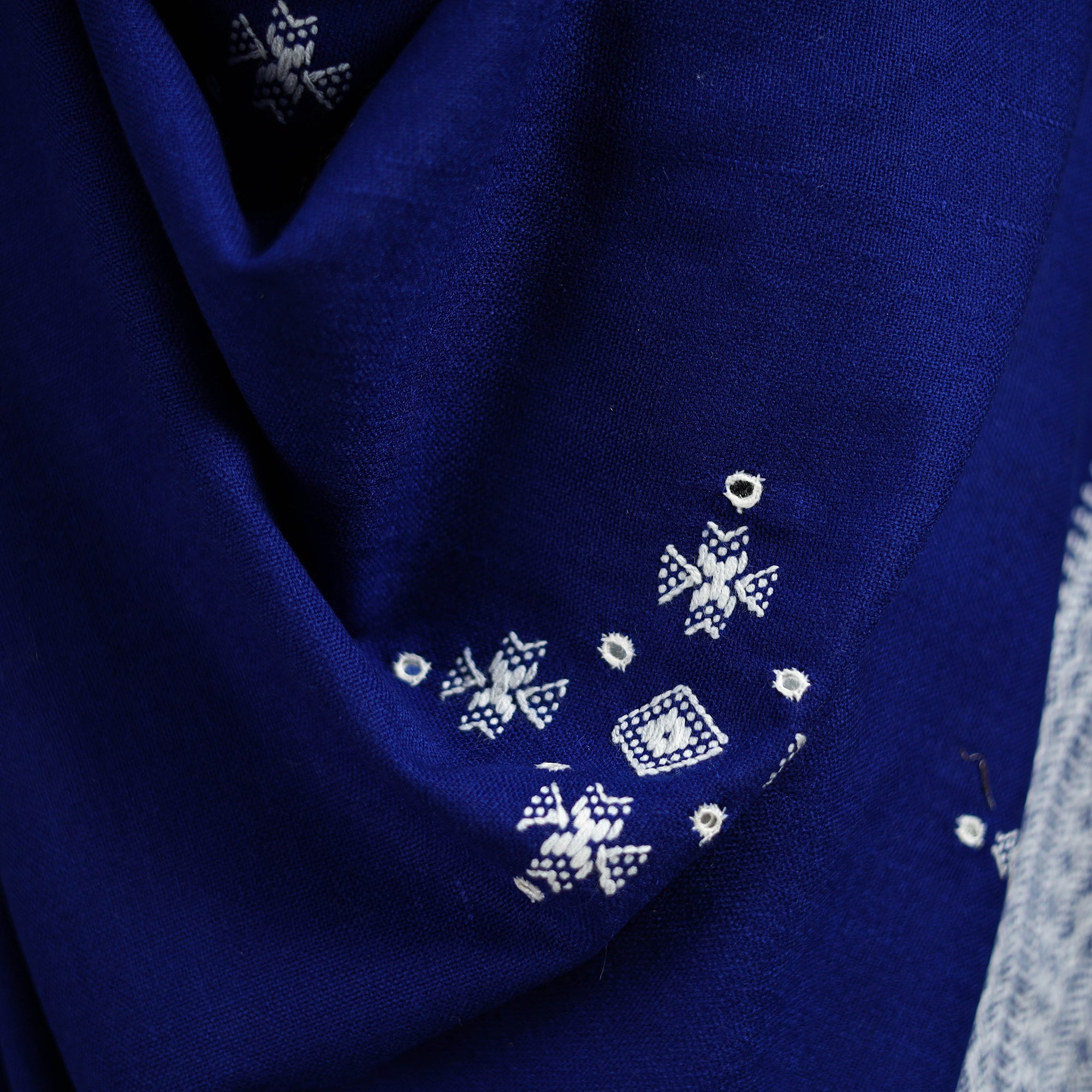 Kutch bhujodi handwoven shawl is thoughtfully created by skilled artisans from Kutch, Gujarat. Adorned with traditional mirror work and intricate Kutchi motifs, it is made from acrylic wool that offers both warmth and comfort. A perfect blend of tradition and style, it is ideal for everyday elegance or occasion wear.