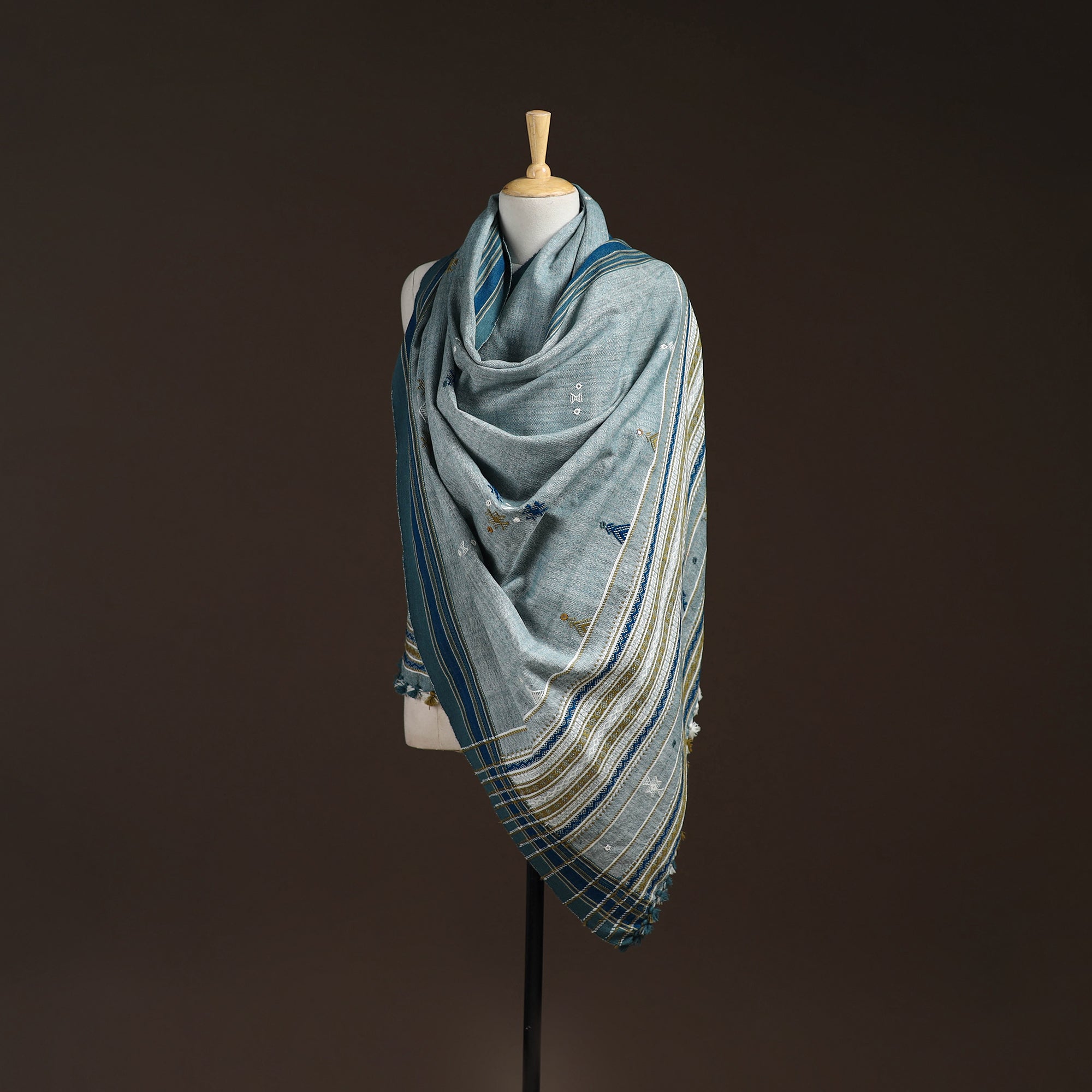 Kutch Bhujodi Handwoven Mirror Work Acrylic Wool Shawl 42