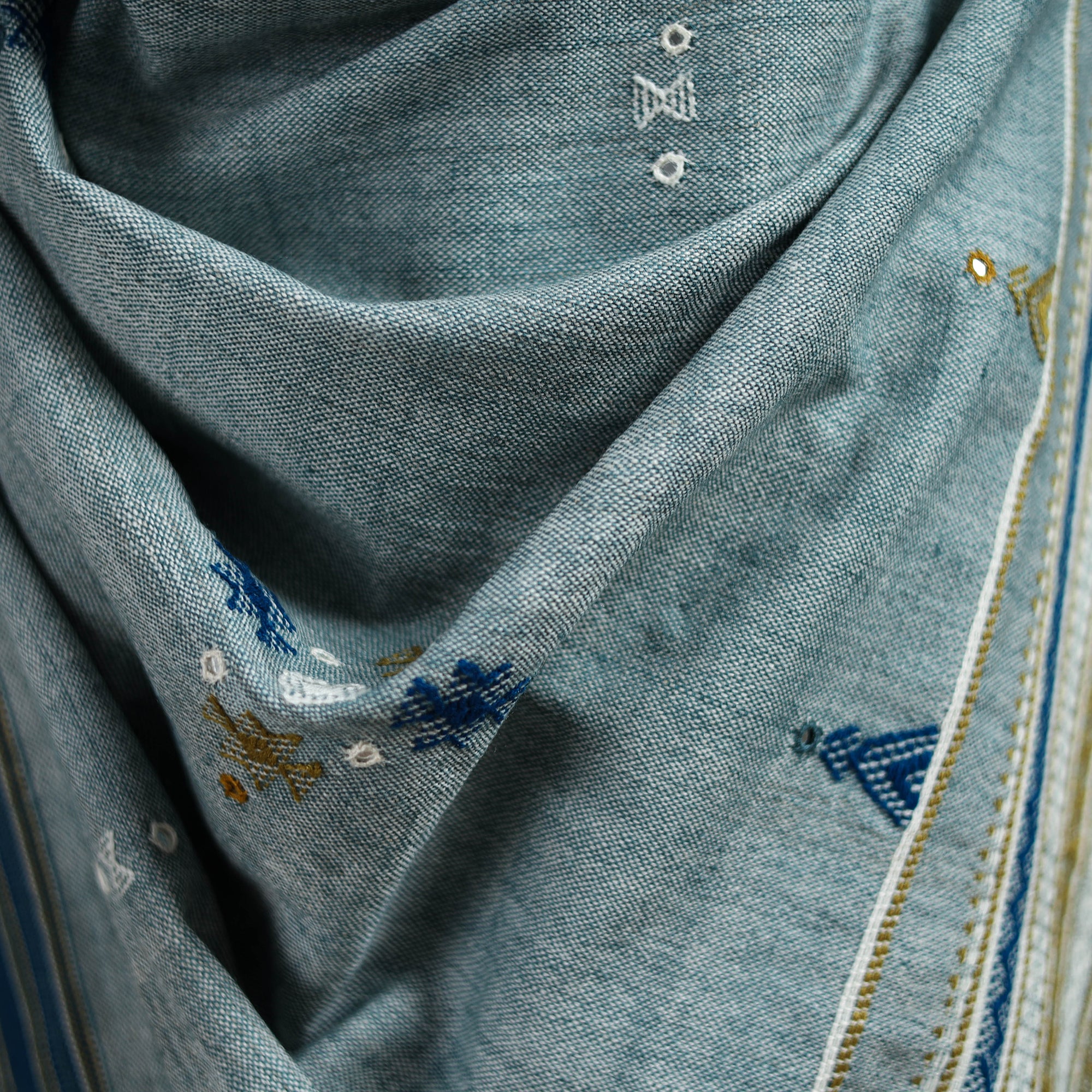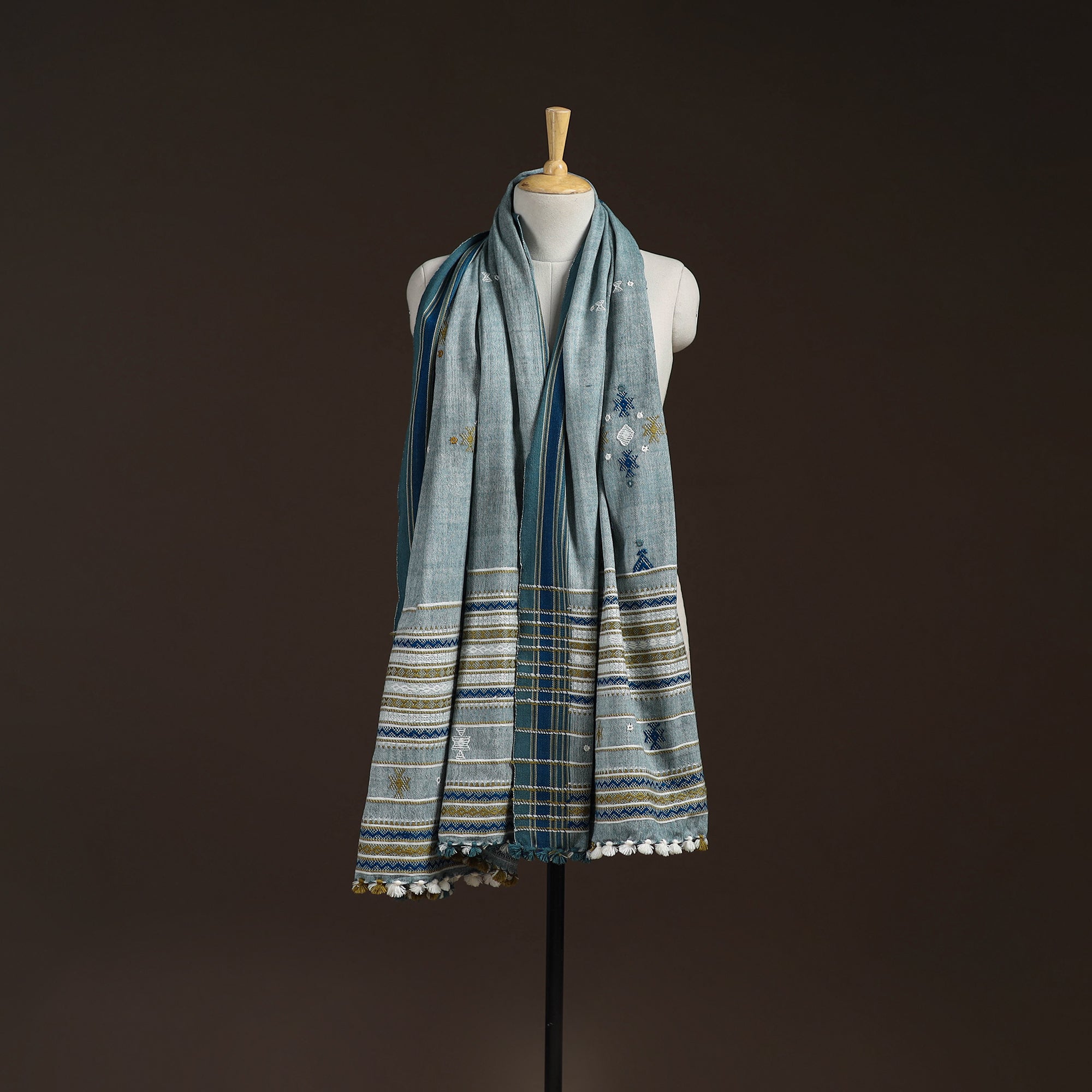 Kutch bhujodi handwoven shawl is thoughtfully created by skilled artisans from Kutch, Gujarat. Adorned with traditional mirror work and intricate Kutchi motifs, it is made from acrylic wool that offers both warmth and comfort. A perfect blend of tradition and style, it is ideal for everyday elegance or occasion wear.