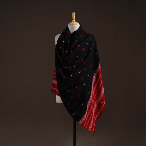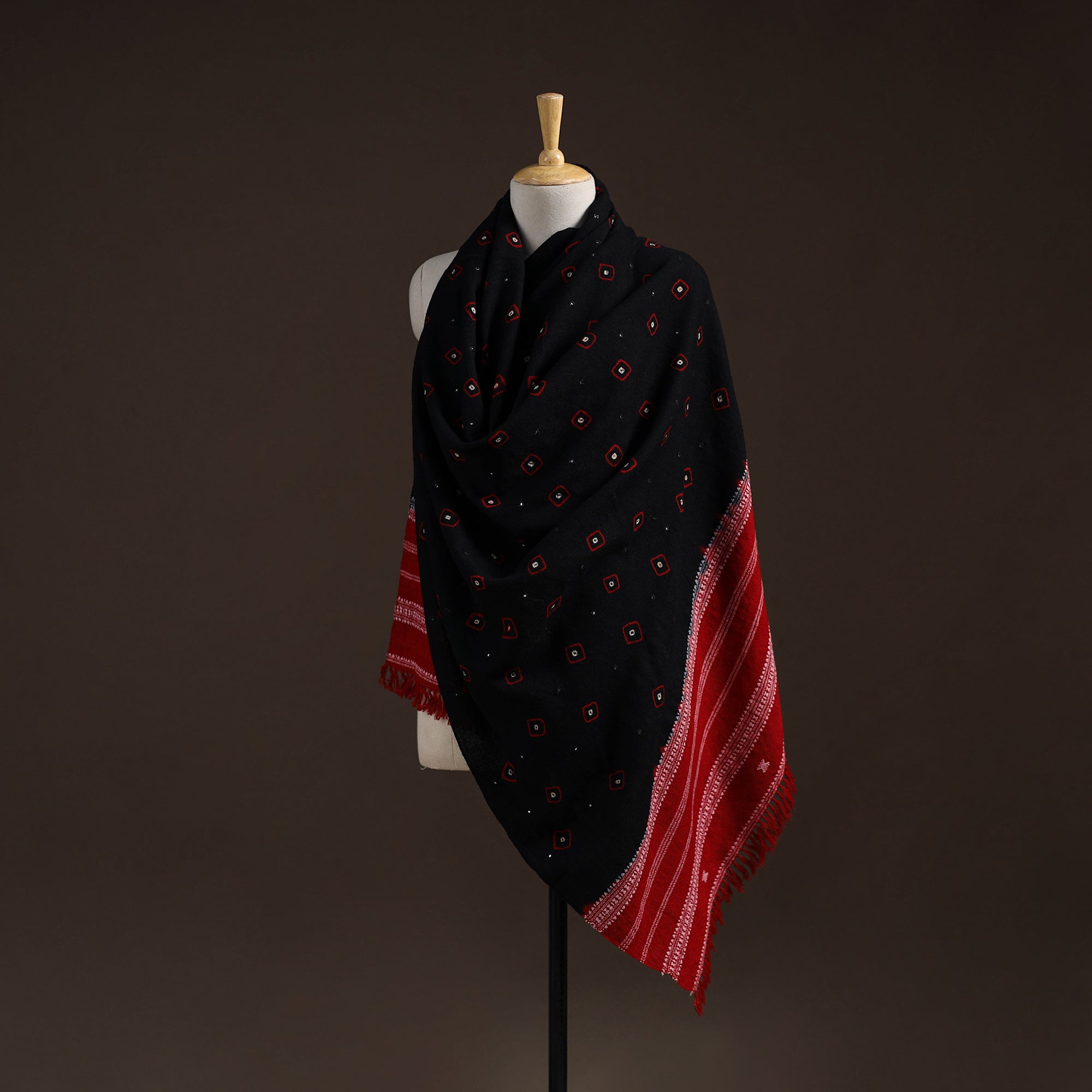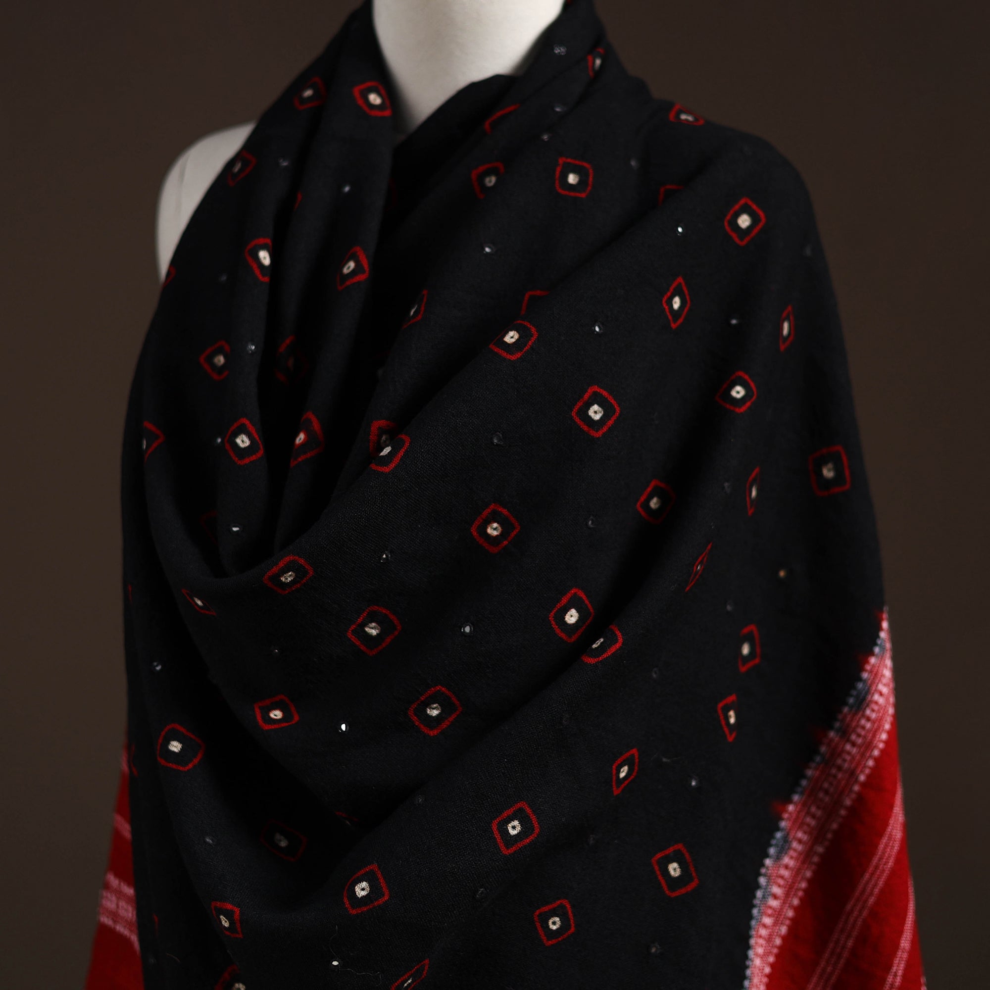 Kutch Bhujodi Handwoven Mirror Work Merino Wool Bandhani Tie-Dye Shawl 13