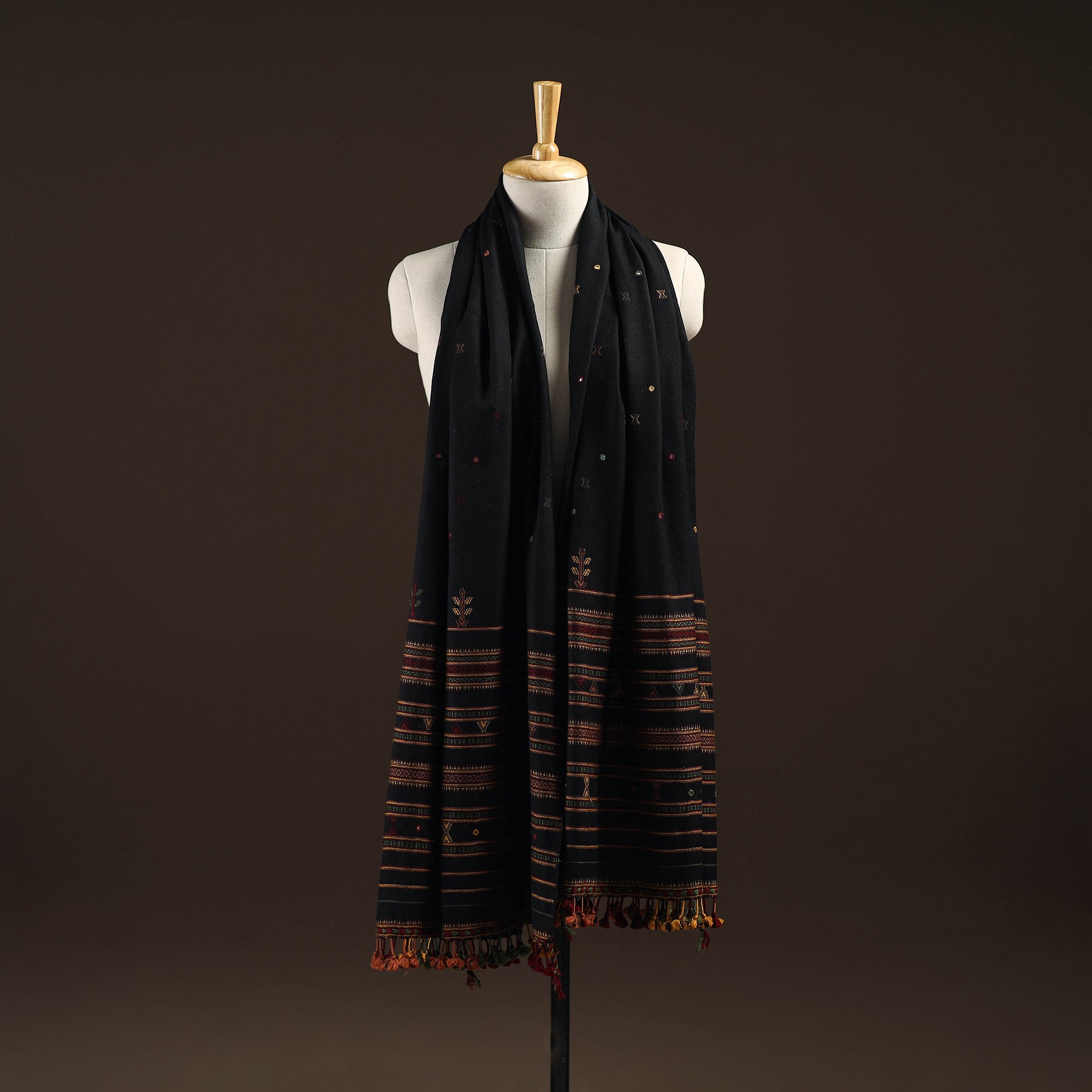 This black kutch bhujodi mirror work handwoven shawl is crafted by skilled artisans in Gujarat’s Kutch region. Made from soft, warm merino wool, it offers comfort, durability, and elegant traditional patterns. Its lightweight yet cozy feel makes it perfect for winter styling. Ethically sourced and beautifully designed, this shawl adds cultural heritage and timeless style to your everyday wardrobe.