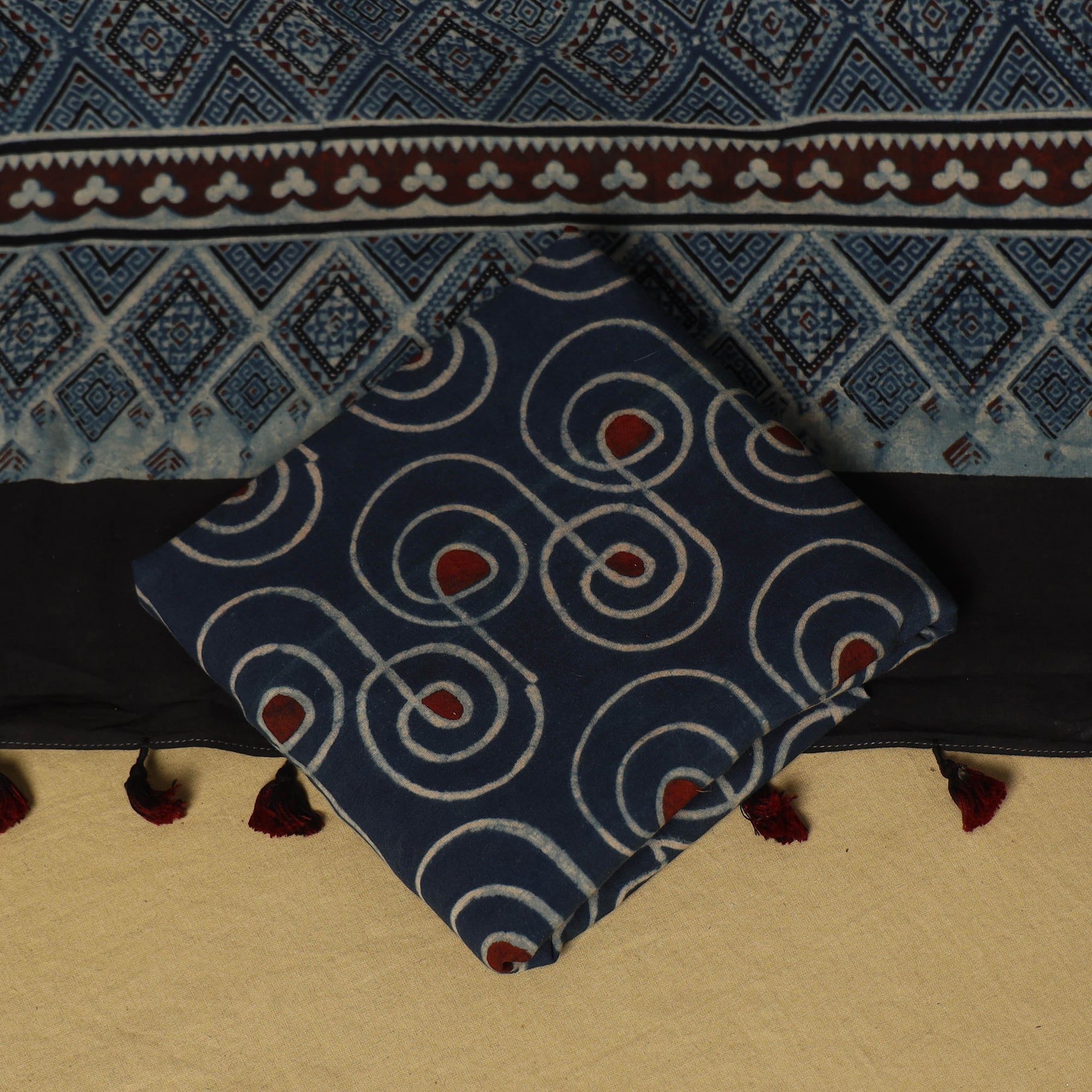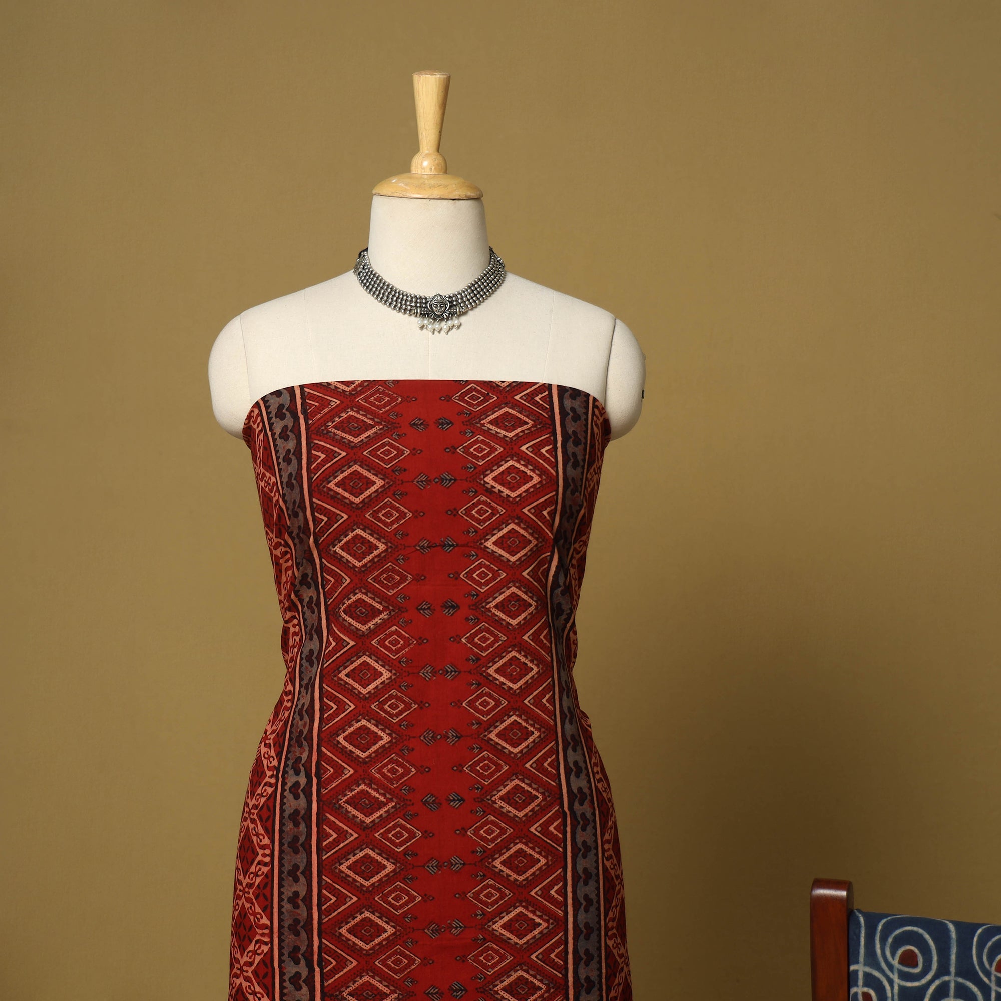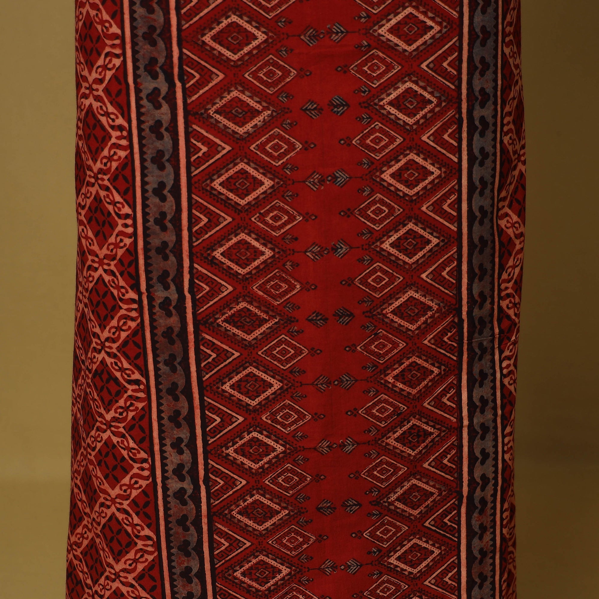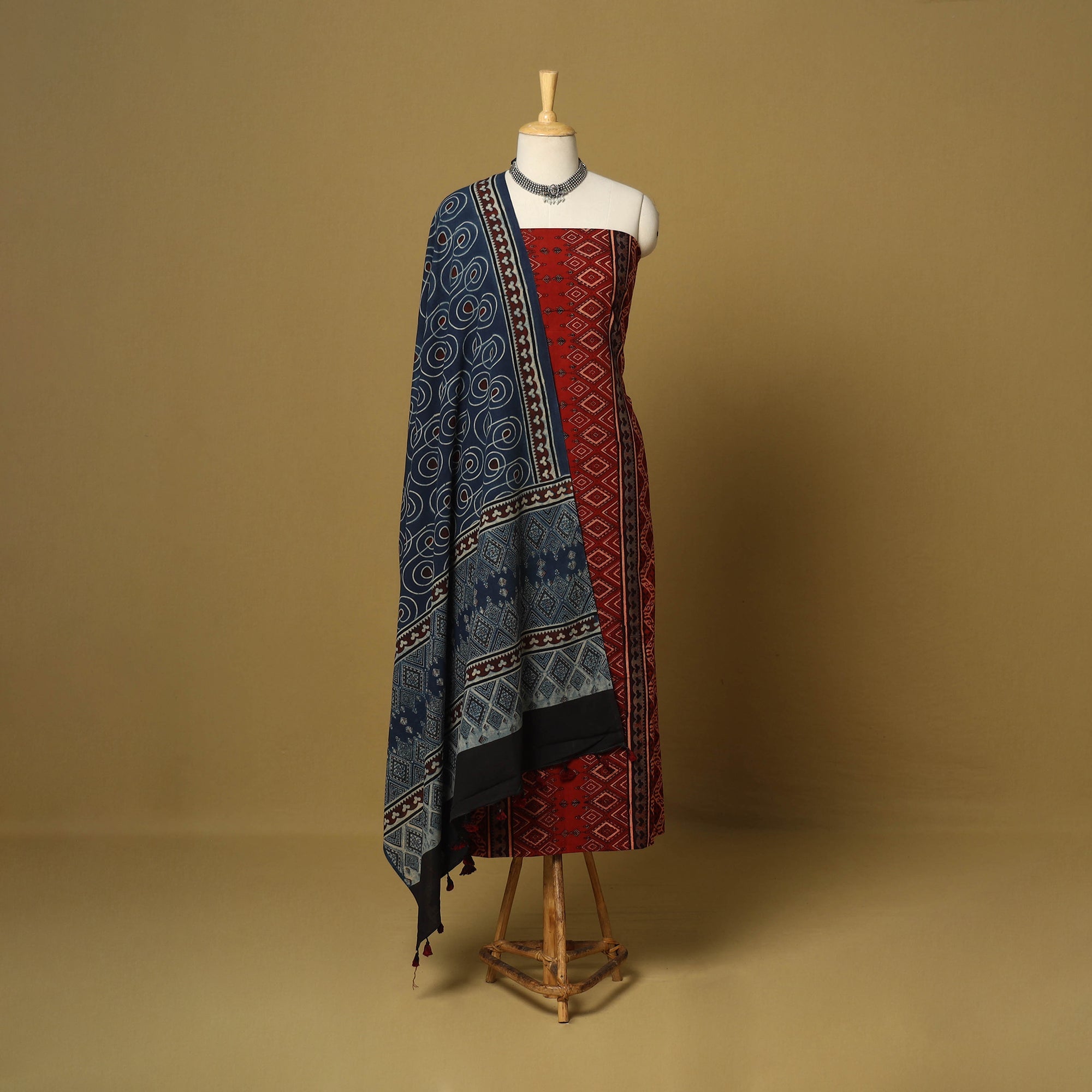 Celebrate timeless craftsmanship with this kutch block print cotton 3pc red ajrakh dress material, hand block printed in Kutch, Gujarat using natural dyes and the ancient Ajrakh technique. This 3pc suit set includes cotton kurta fabric, bottom, and dupatta adorned with rich motifs that reflect India’s cultural legacy. Perfect for festive occasions or for creating an elegant ethnic look for office wear.