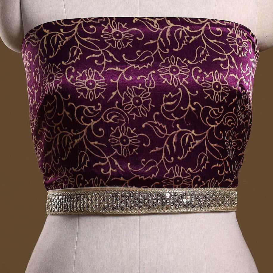 Purple - Kutch Block Printed Modal Silk Blouse Piece with Lace Work 10