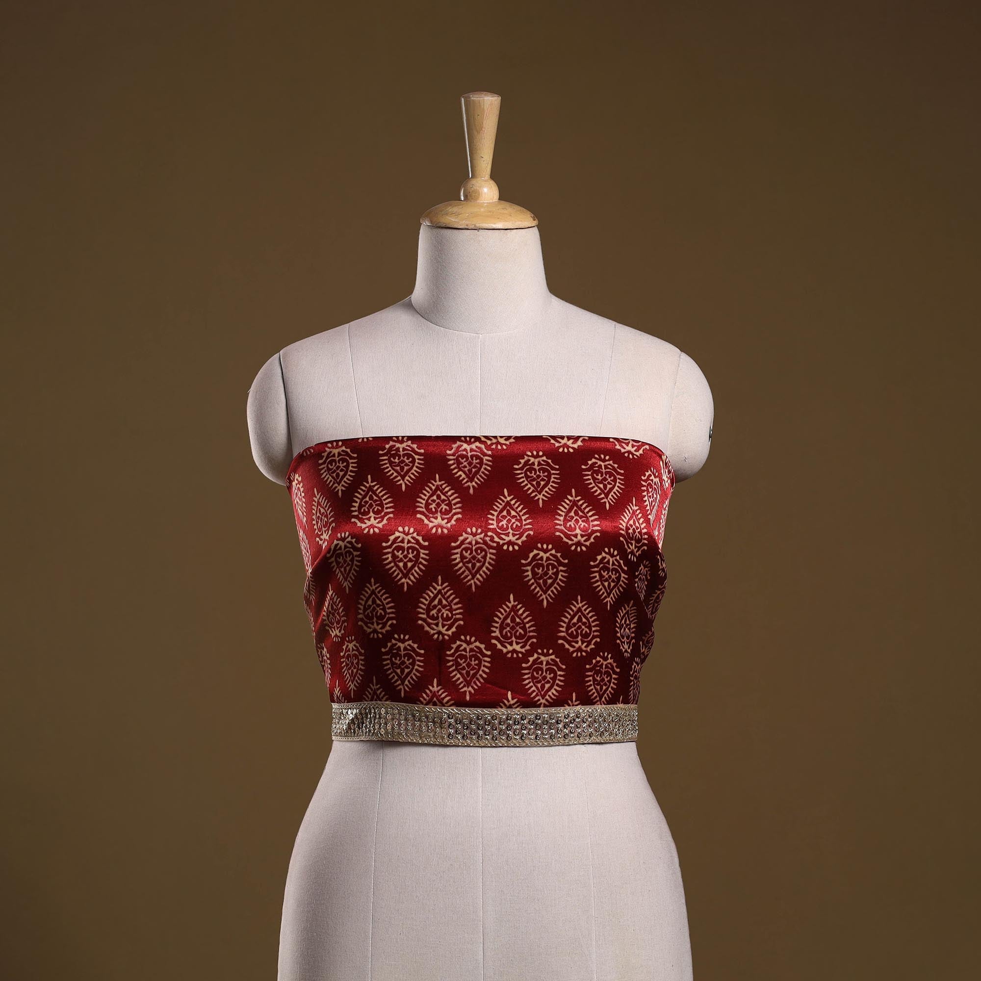 Kutch Block Printed Modal Silk Blouse Piece with Lace Work 28