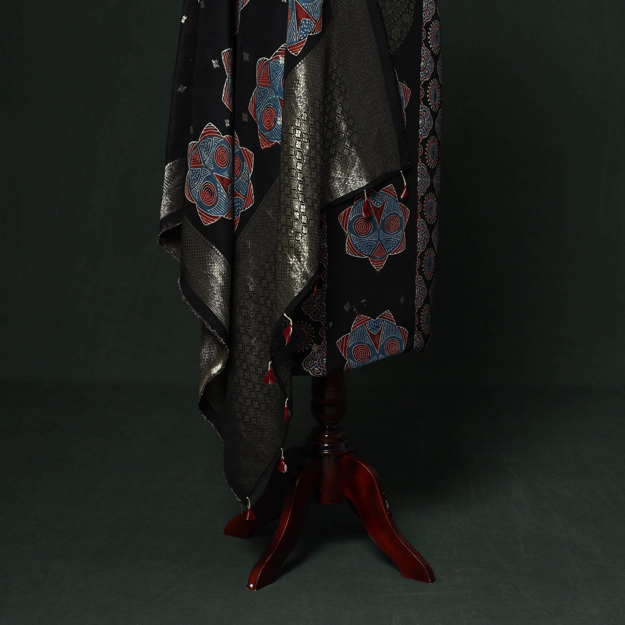 Ajrakh is a well-known traditional vegetable dyeing that resists block-printing techniques on cloth. Originated in Kutch, It is nearly around 4,500 years old practised by Khatri community of Kutch and Sikh.