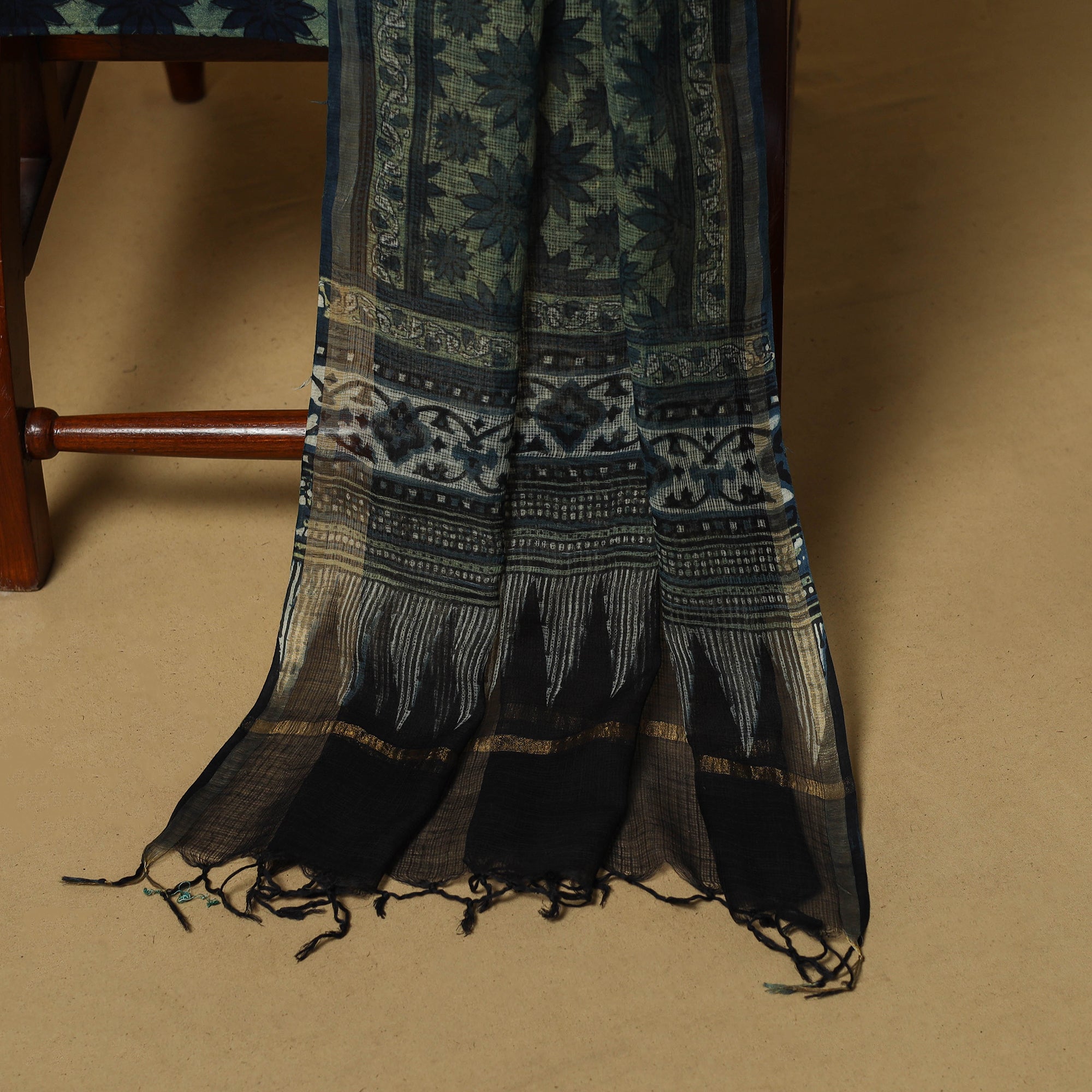 Ajrakh is a well-known traditional vegetable dyeing that resists block-printing techniques on cloth. Originated in Kutch, It is nearly around 4,500 years old practised by Khatri community of Kutch and Sikh.