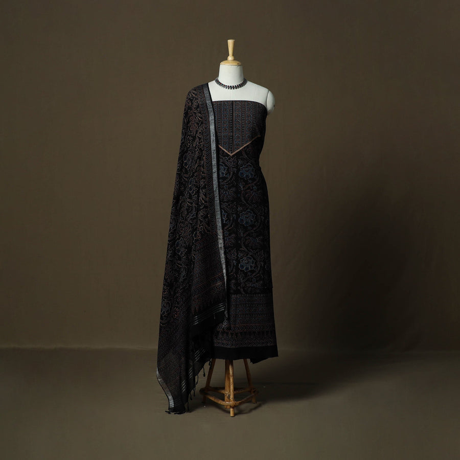 Kutch Hand Block Ajrakh Print Natural Dyed Linen Cotton 2pc Unstitched Dress Material 28