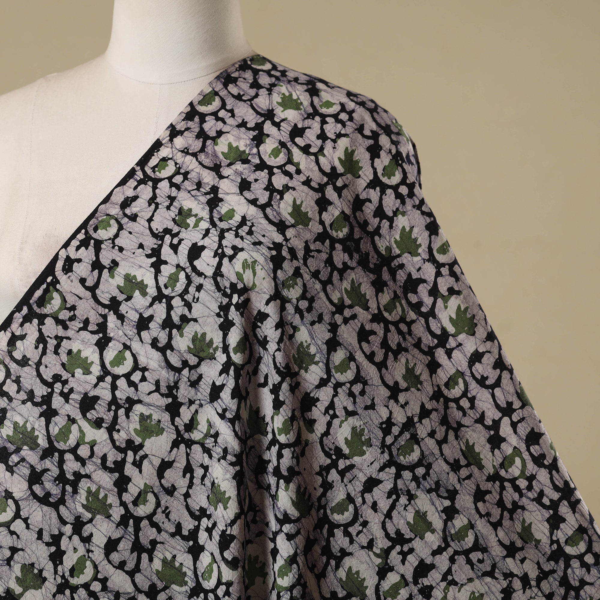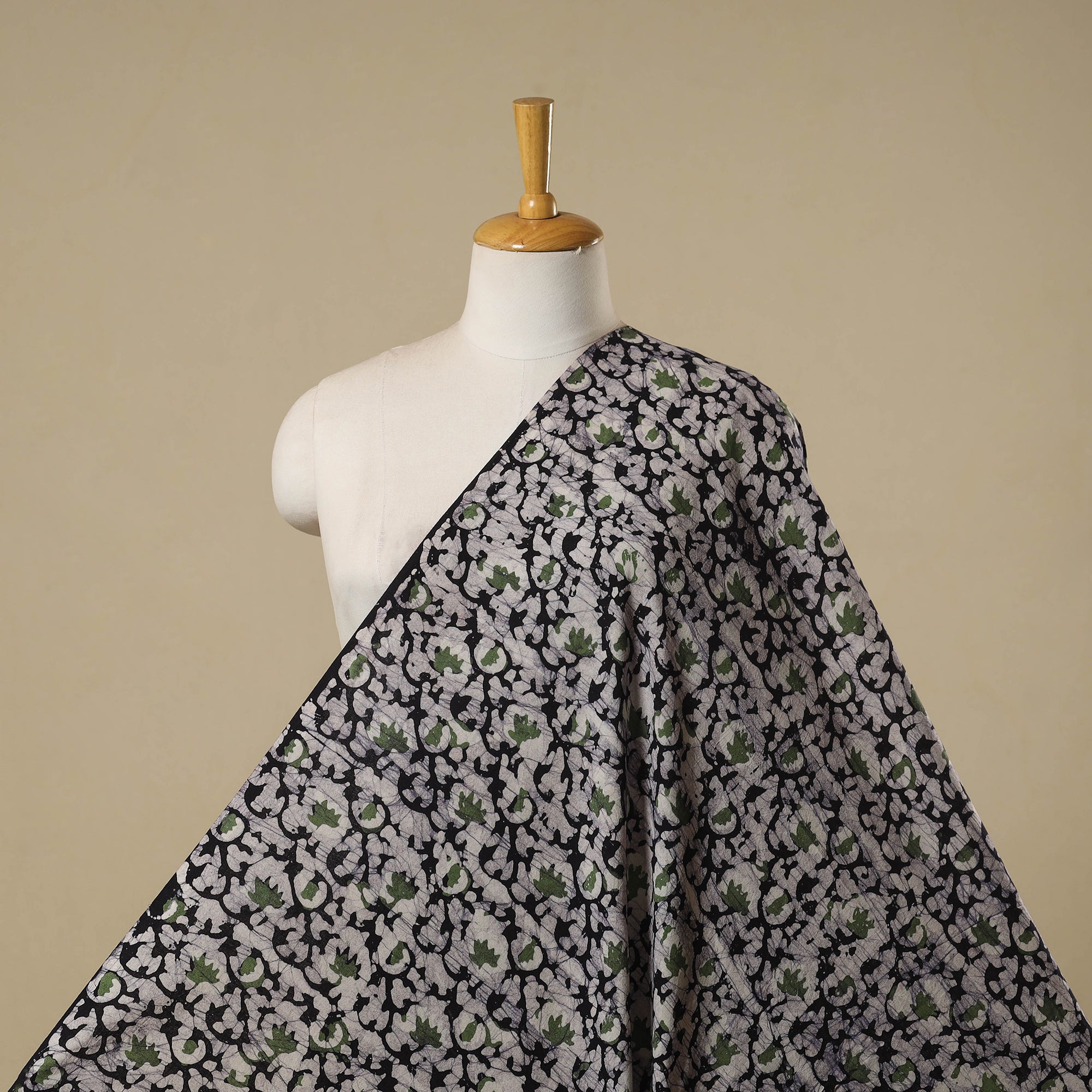 Blue hand block batik print cotton fabric from Kutch, Gujarat is crafted using the traditional wax-resist dyeing technique, where hot wax is carefully applied before dyeing to achieve intricate patterns. The cotton base offers dependable durability and everyday comfort, making it versatile for ethnic outfits, relaxed casual wear and creative home decor ideas.