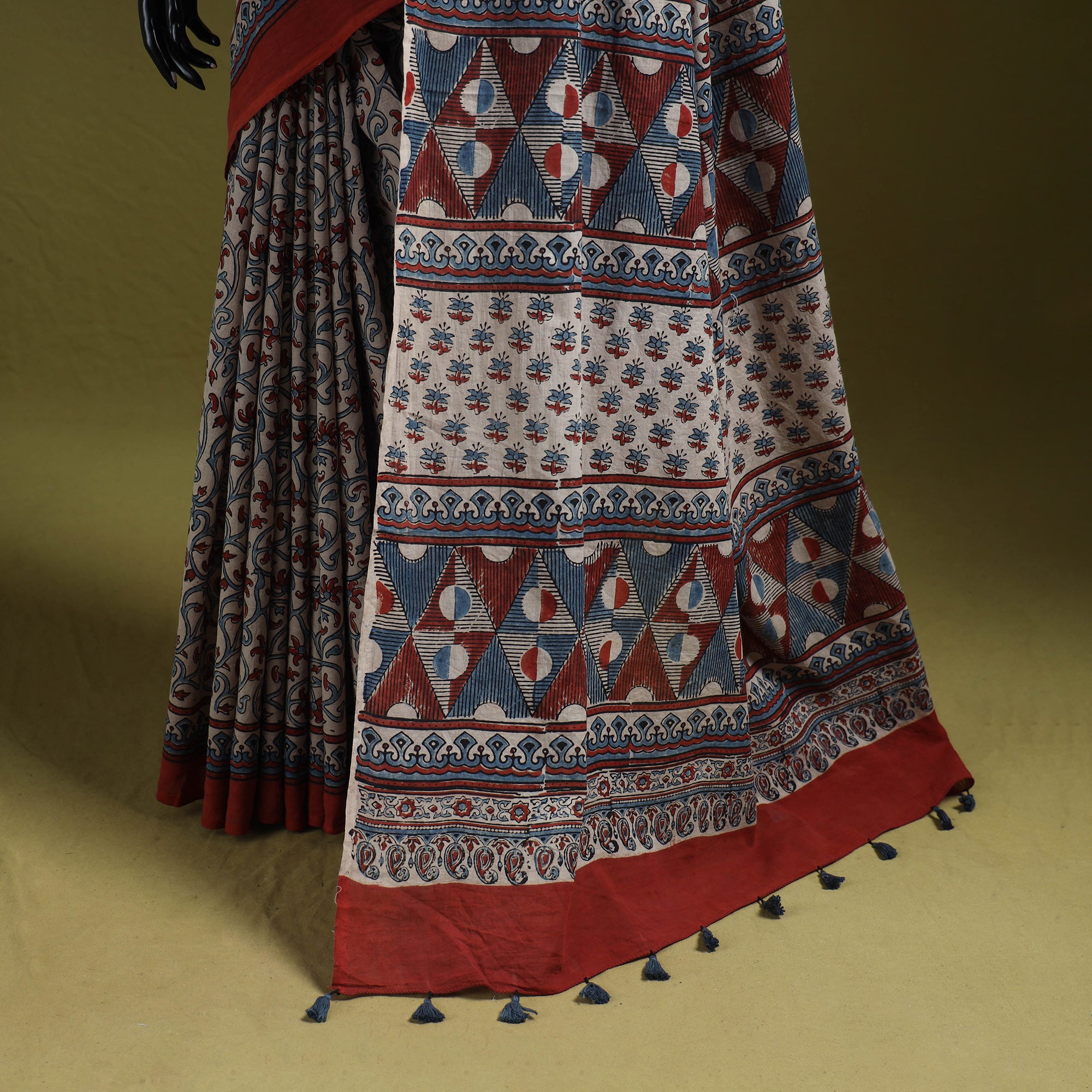 Kutch Hand Block Print Natural Dyed Pure Mul Cotton Ajrakh Saree with Tassels 09