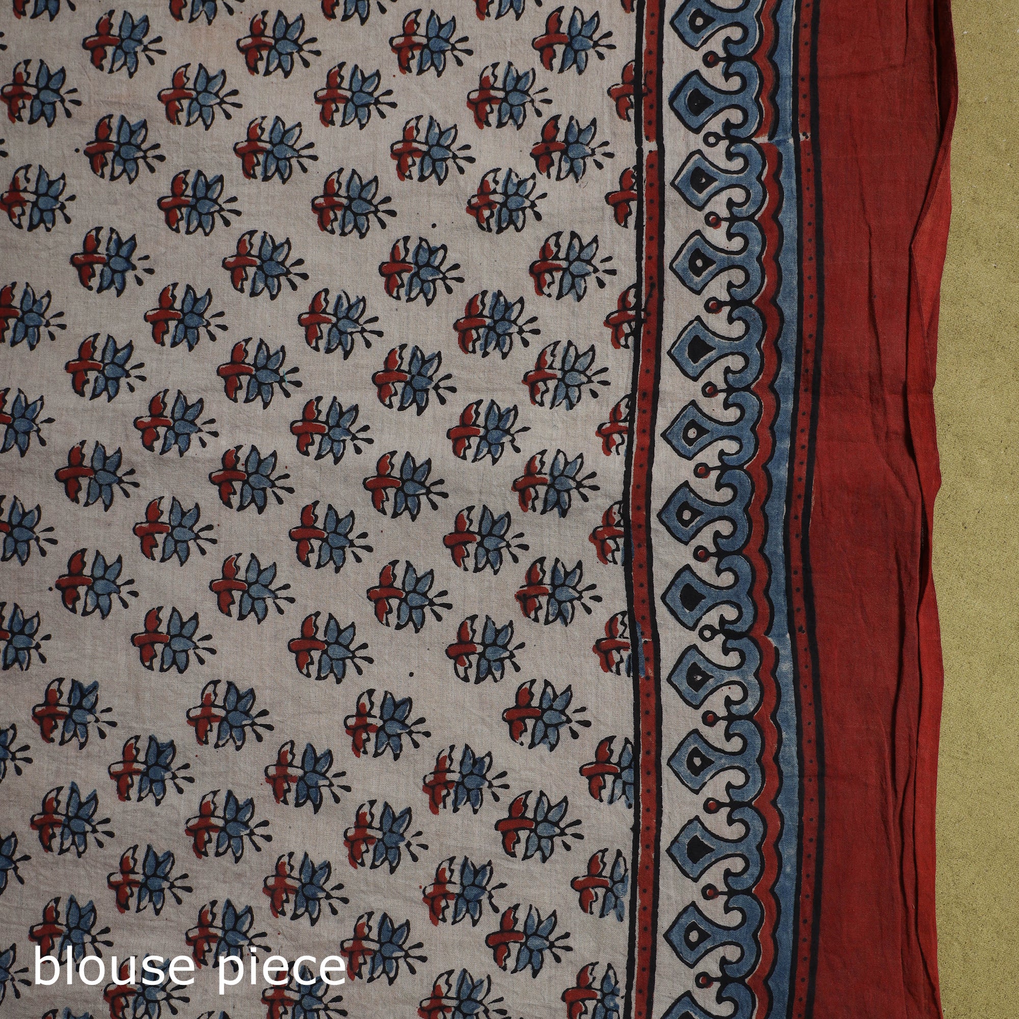 • Kutch Hand Block Print Natural Dyed Pure Mul Cotton Ajrakh Saree with Tassels 09