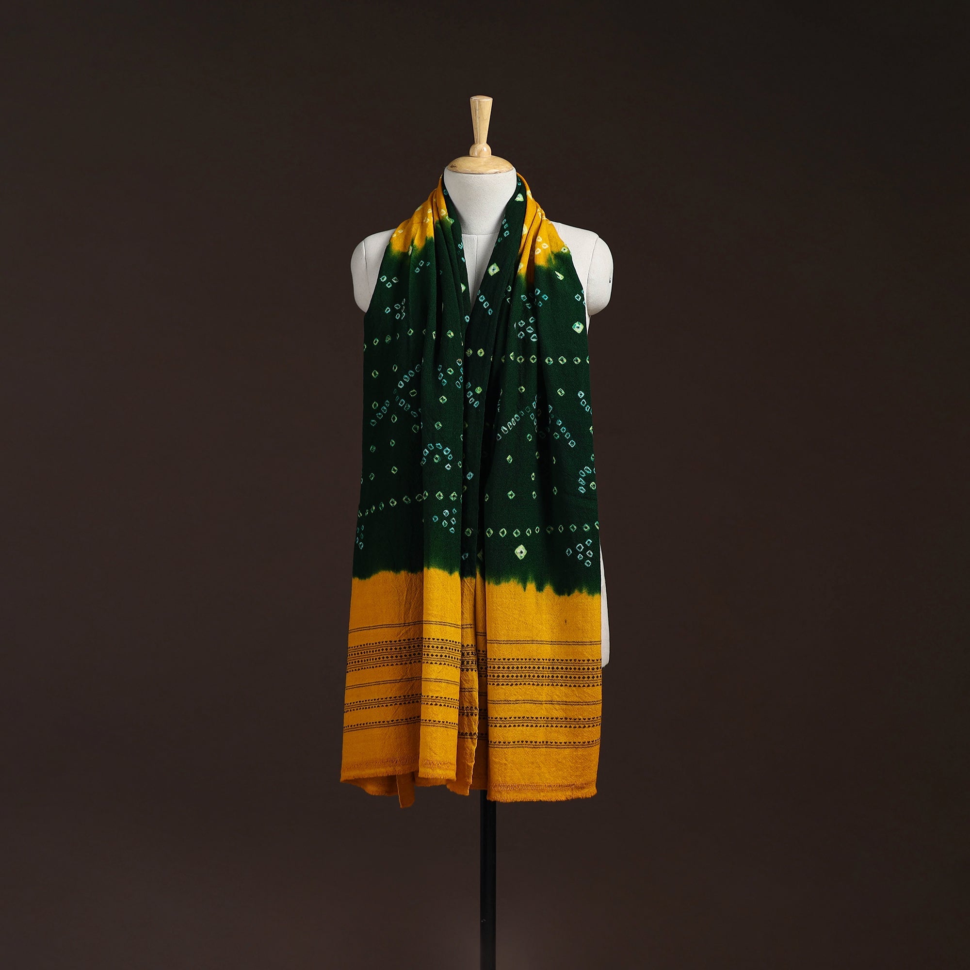 Kutch Handwoven Bandhani Merino Wool Shawl 05