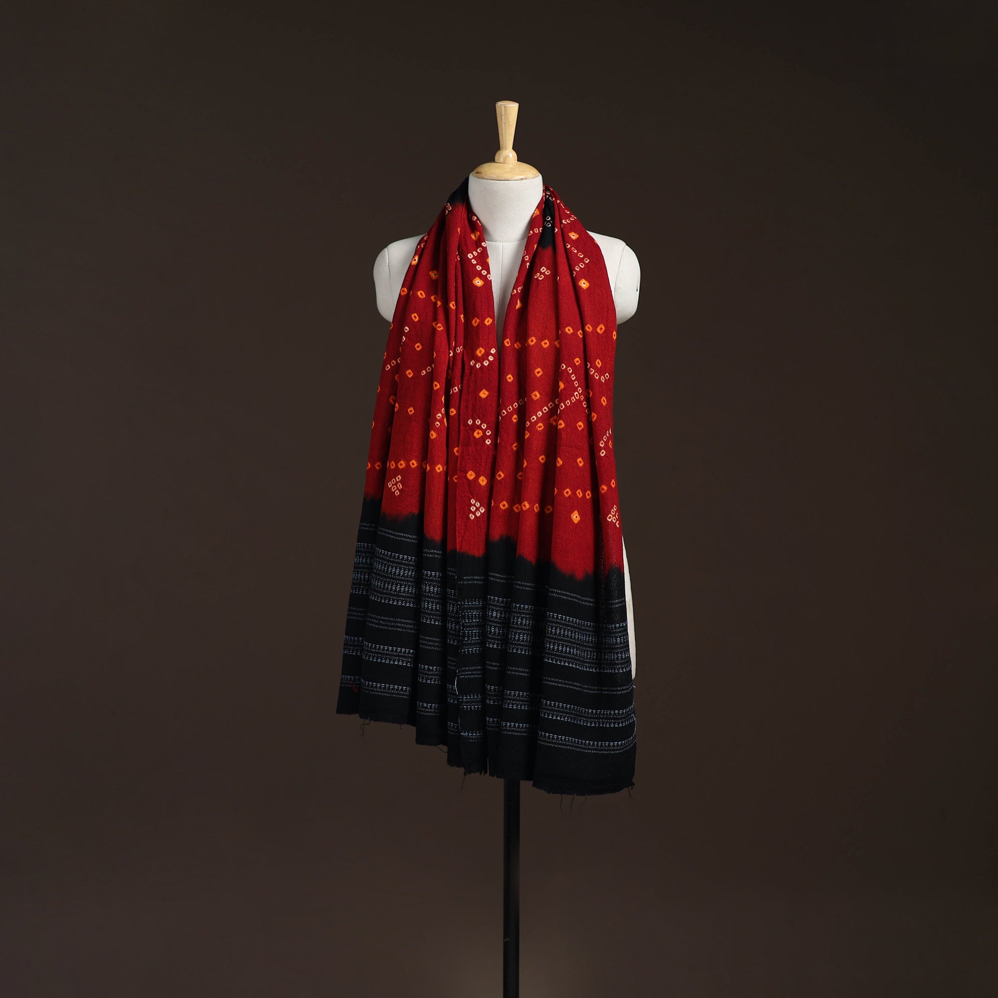 Handwoven bandhani tie-dye merino wool shawl, thoughtfully created by skilled artisans from Kutch, Gujarat, blends traditional charm with a contemporary touch. It adds grace to both everyday outfits and festive looks while offering comforting warmth, making it a beautiful choice for chilly days.