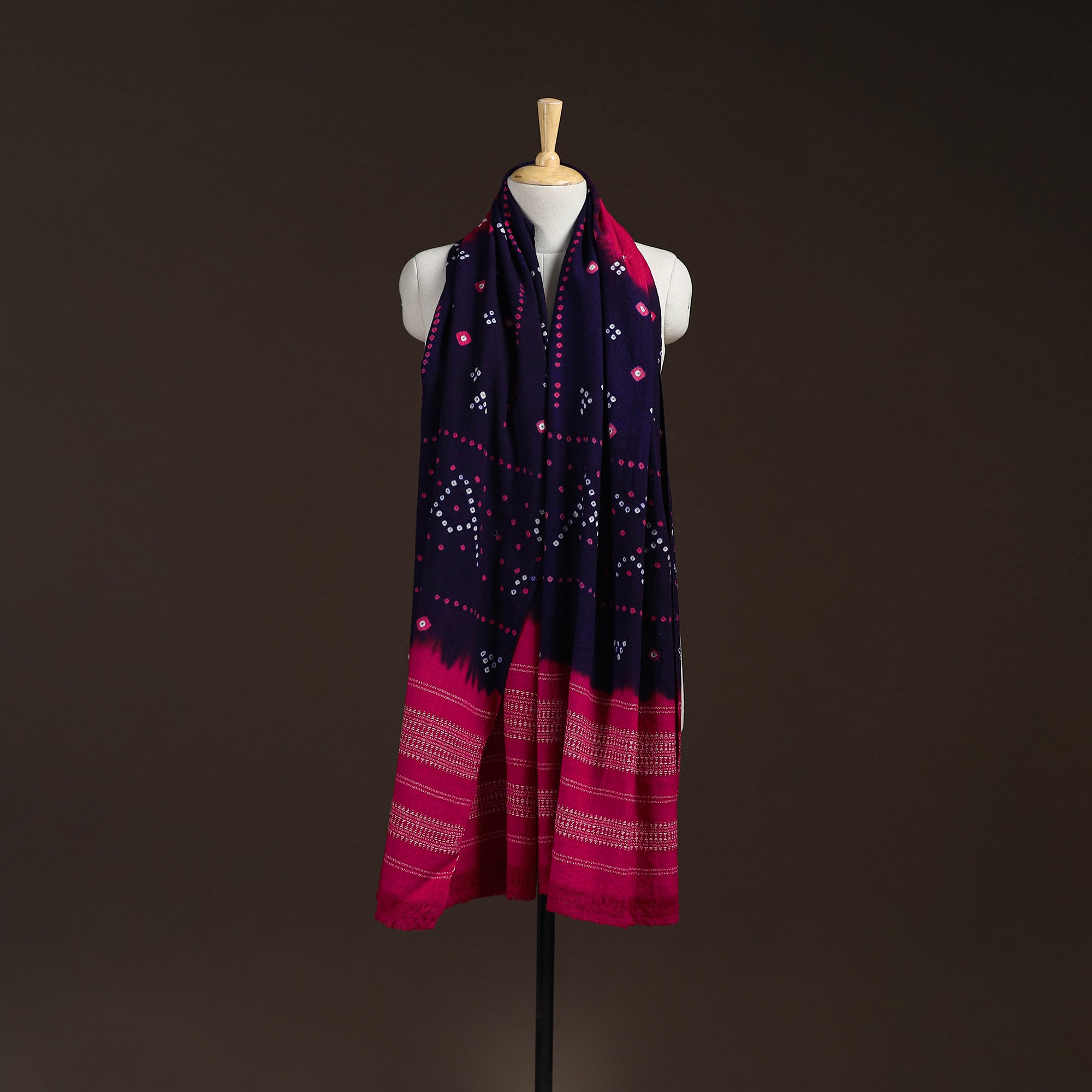 Kutch Handwoven Bandhani Merino Wool Shawl 15