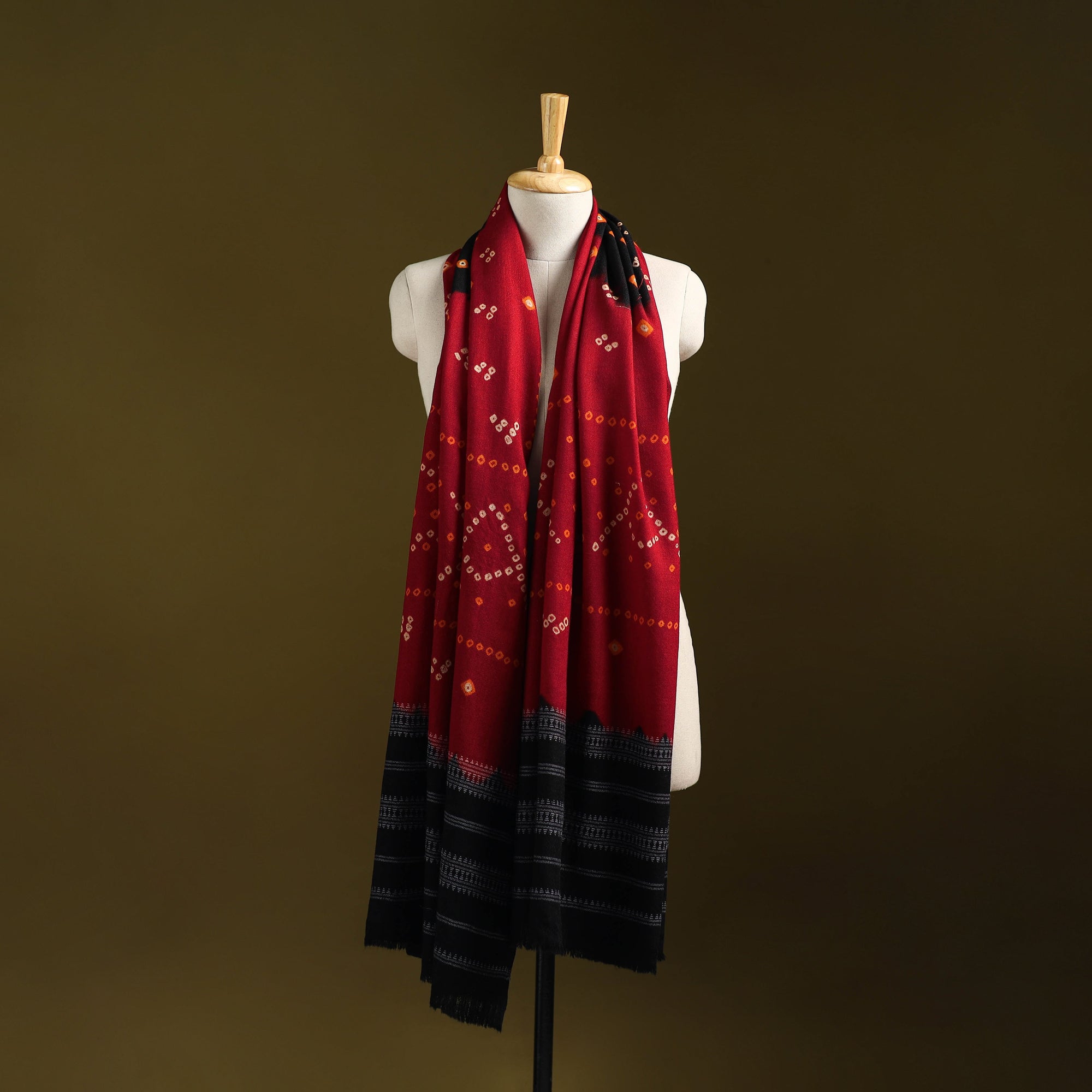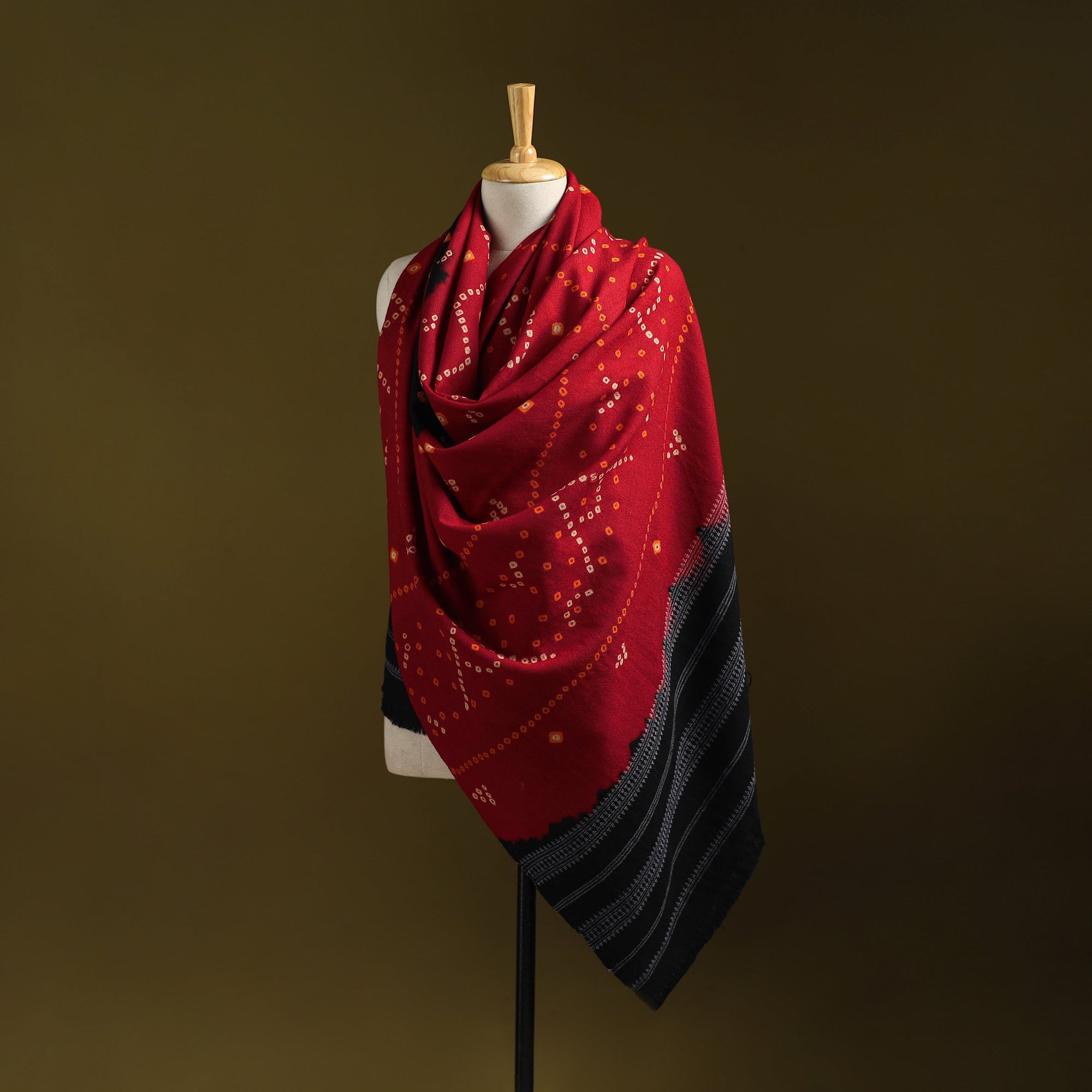 | Material | Red handwoven bandhani tie-dye merino wool shawl features the rich artistry of Kutch, Gujarat. Crafted by skilled artisans under the guidance of the renowned Vankar Bhimji Kanji, it blends traditional charm with a contemporary feel. Adding a graceful touch to everyday looks and festive ensembles alike, it also offers comforting warmth making it a lovely choice for chilly days. |