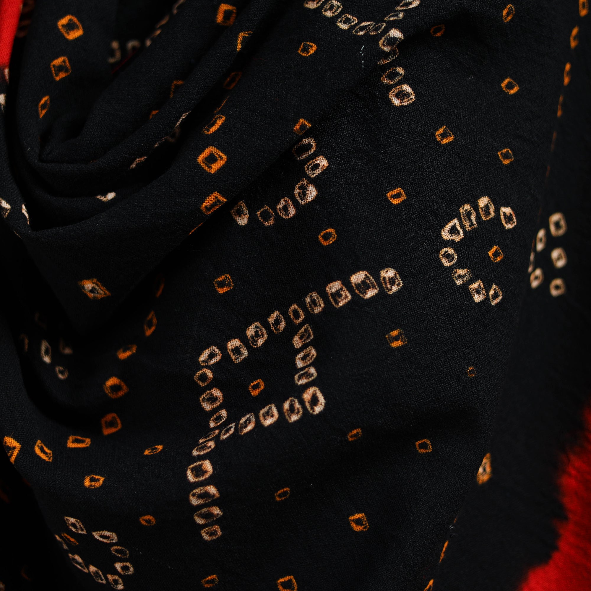 Black - Kutch Handwoven Merino Wool Tie-Dye Bandhani Shawl 01