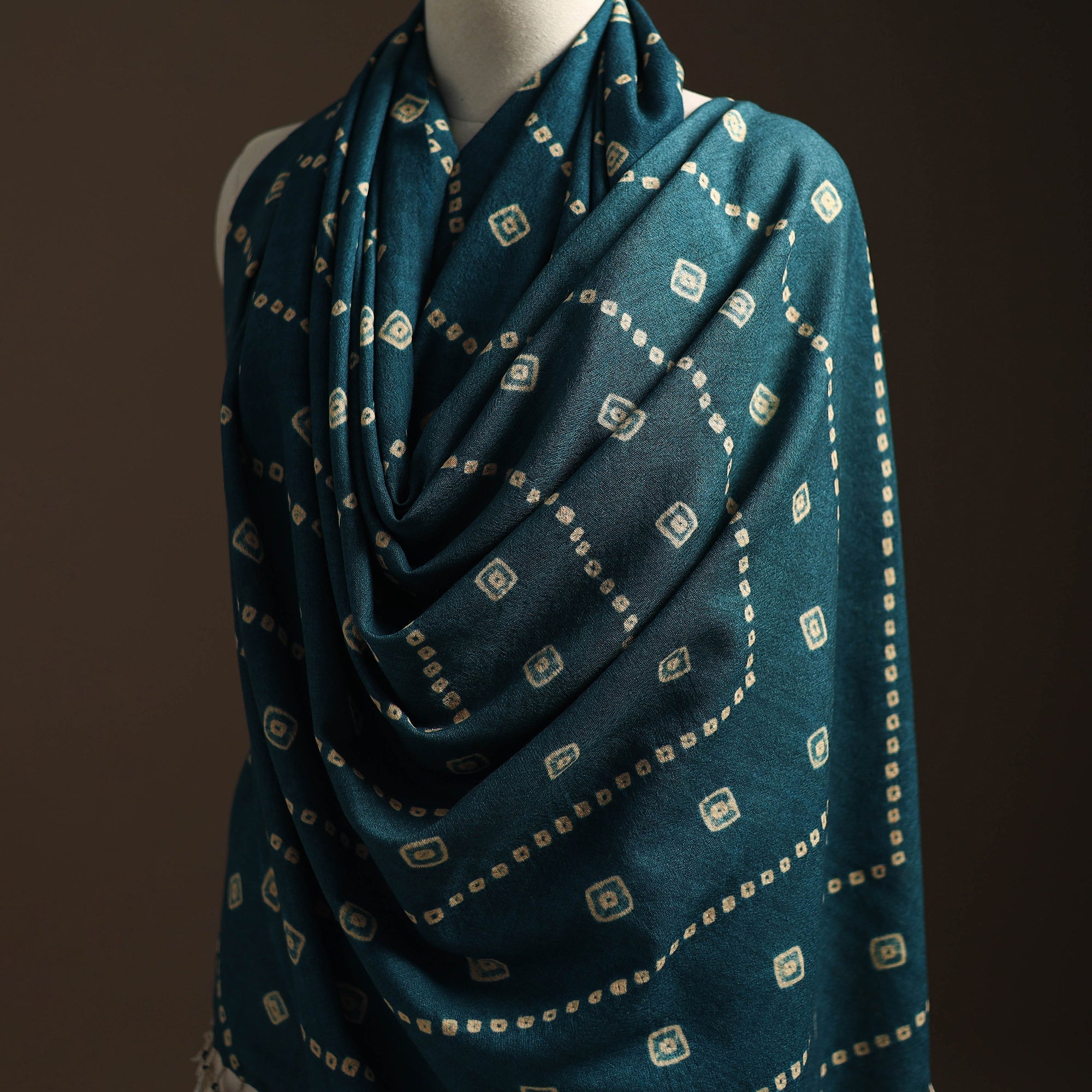 Blue - Kutch Handwoven Bandhani Woolen Shawl 70