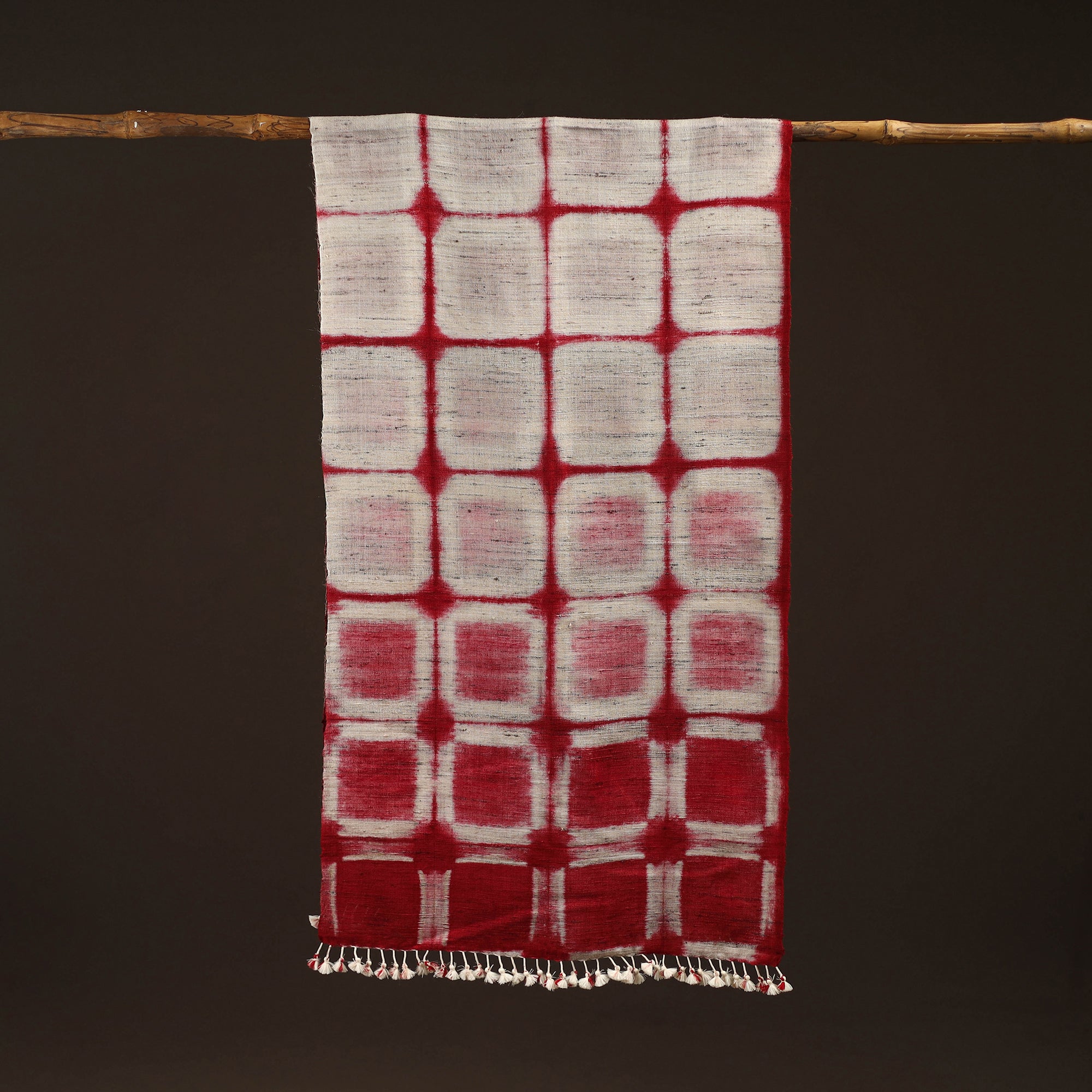 Handwoven shibori stole with tassels crafted by Vankar Bhimji Kanji from Kutch. Made using clamp-dyed techniques. Crafted from merino wool x katia silk, it offers dependable warmth, perfect for chilly days. Ideal for everyday use, travel, thoughtful gifting or adding a artisanal flair to your special outfits.