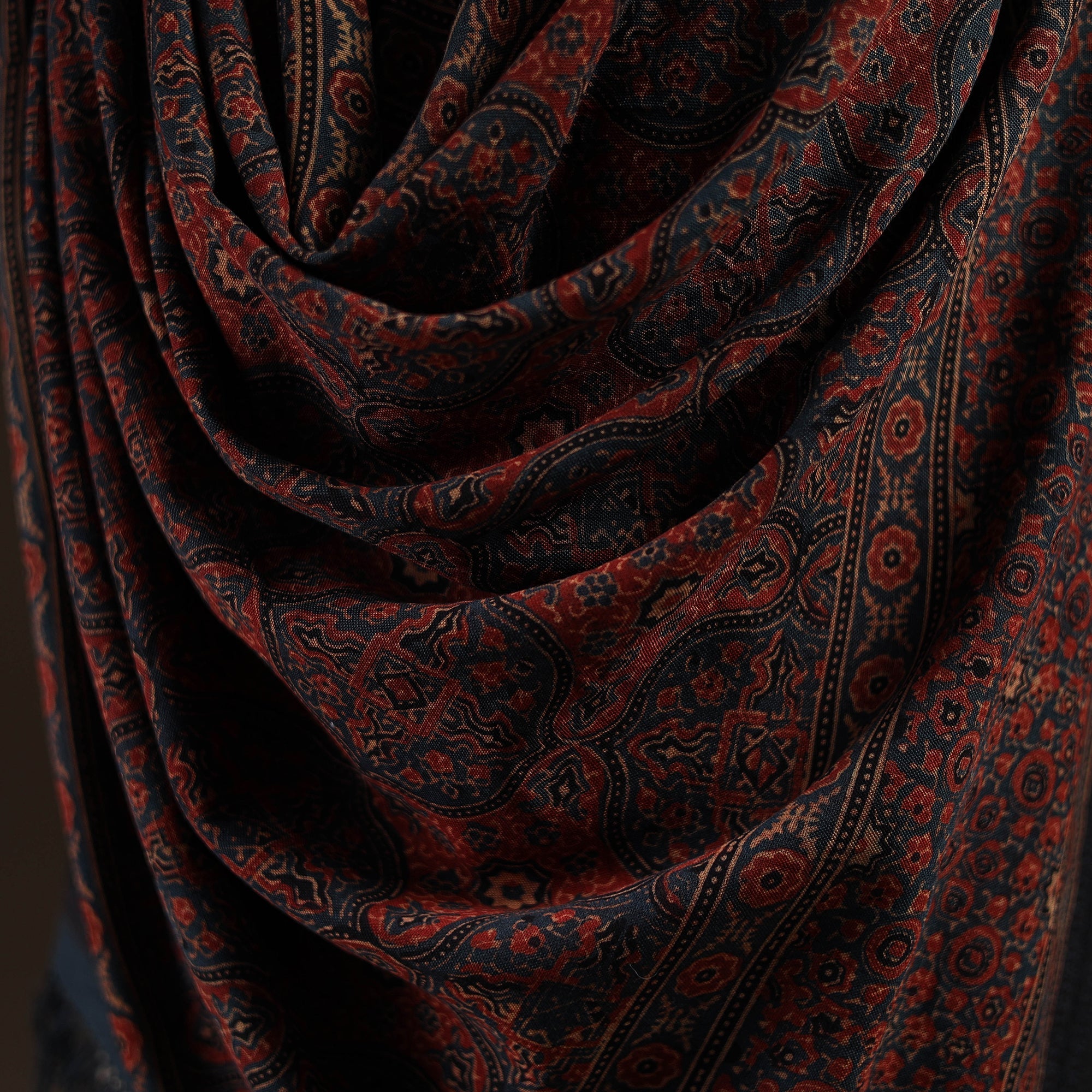 Ajrakh is a well-known traditional vegetable dyeing that resists block-printing techniques on cloth. Originated in Kutch, It is nearly around 4,500 years old practised by Khatri community of Kutch and Sikh.