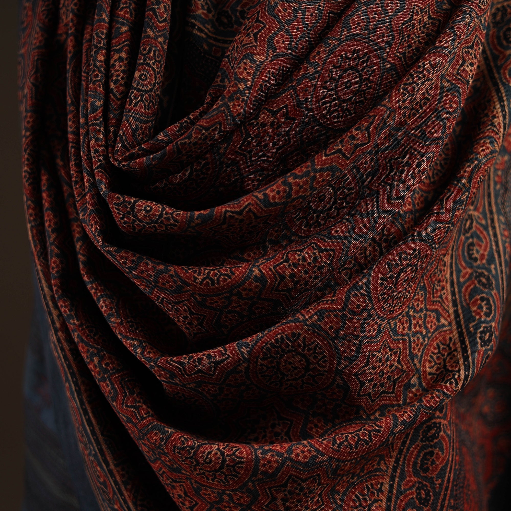 Ajrakh is a well-known traditional vegetable dyeing that resists block-printing techniques on cloth. Originated in Kutch, It is nearly around 4,500 years old practised by Khatri community of Kutch and Sikh.