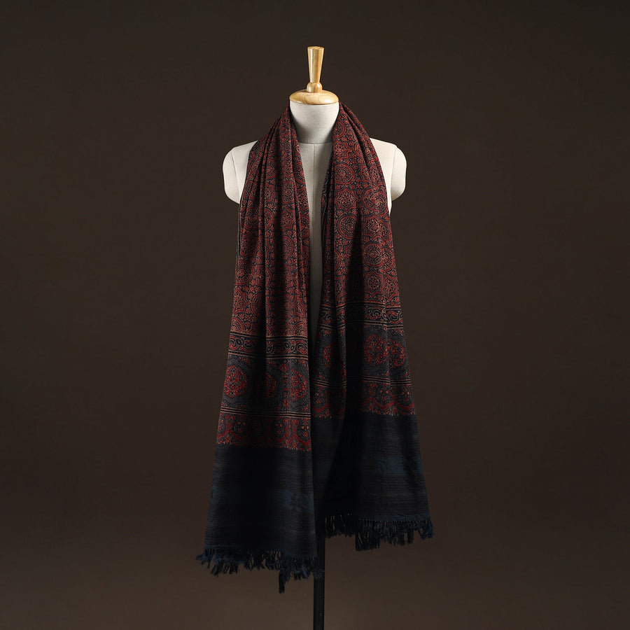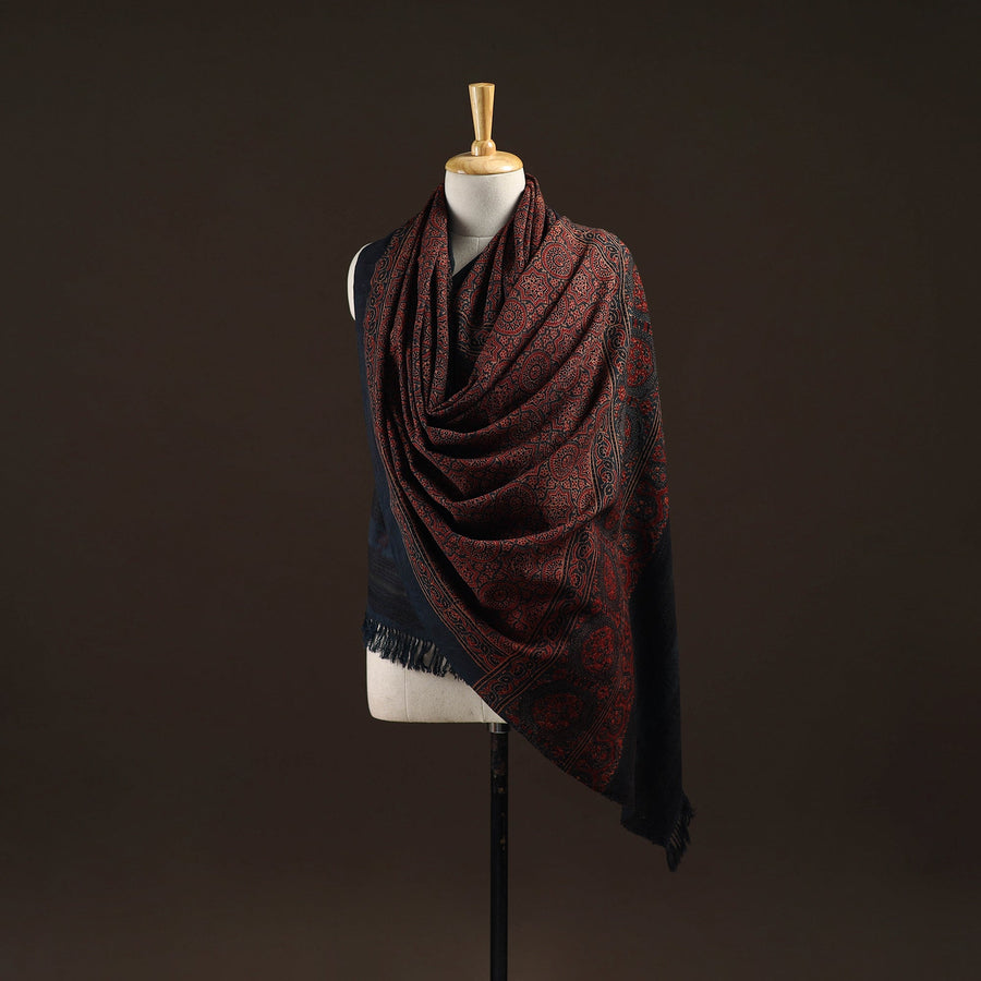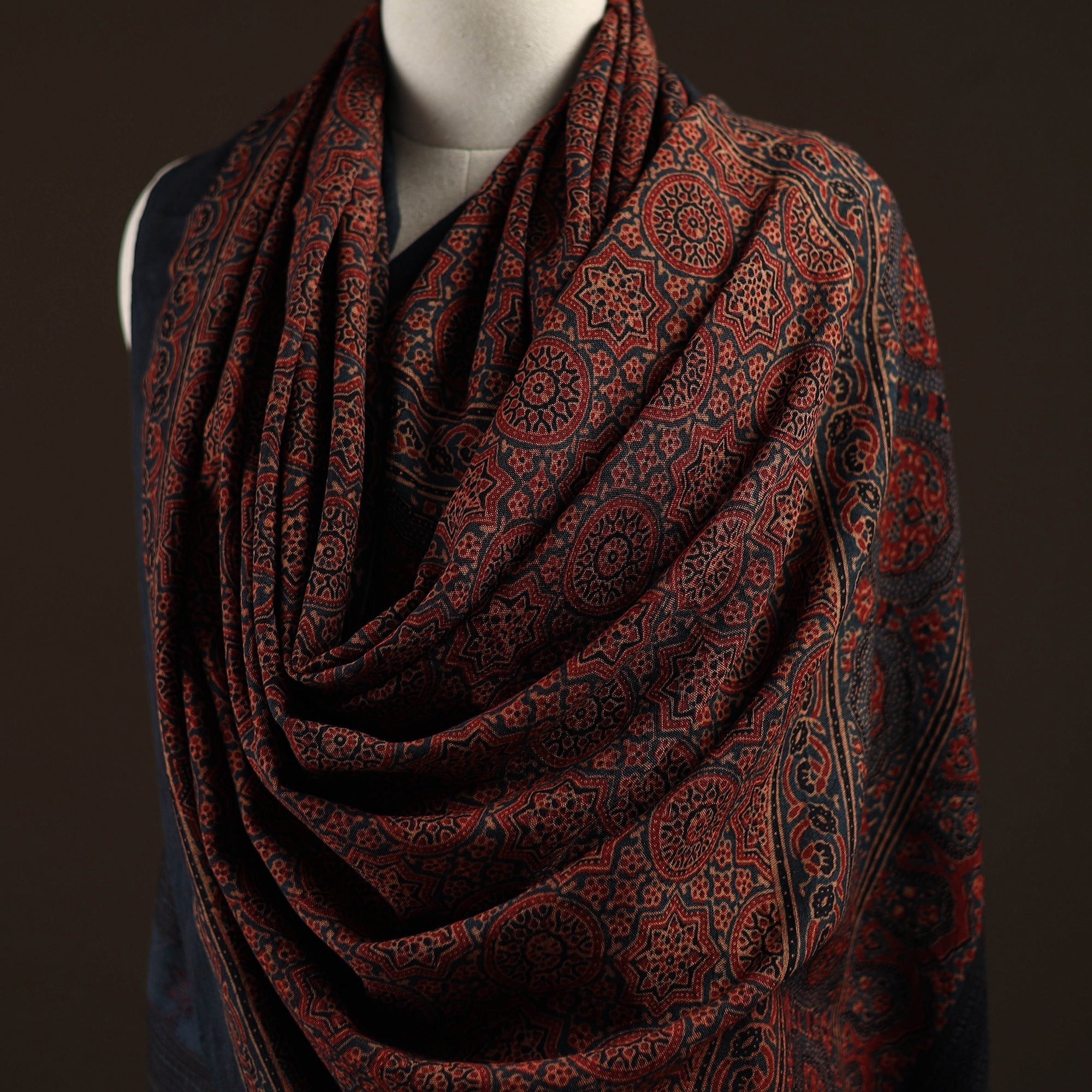 Red - Kutch Handwoven Hand Block Ajrakh Print Merino Wool Shawl 11