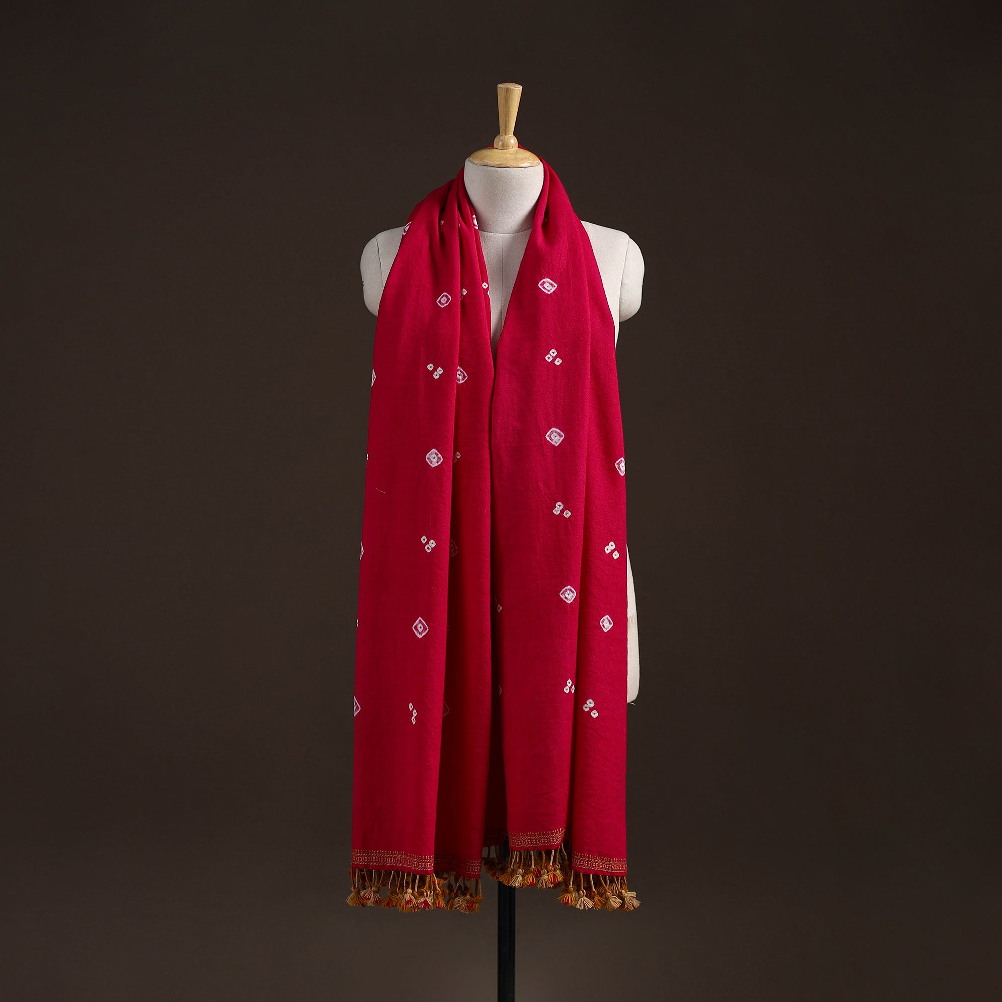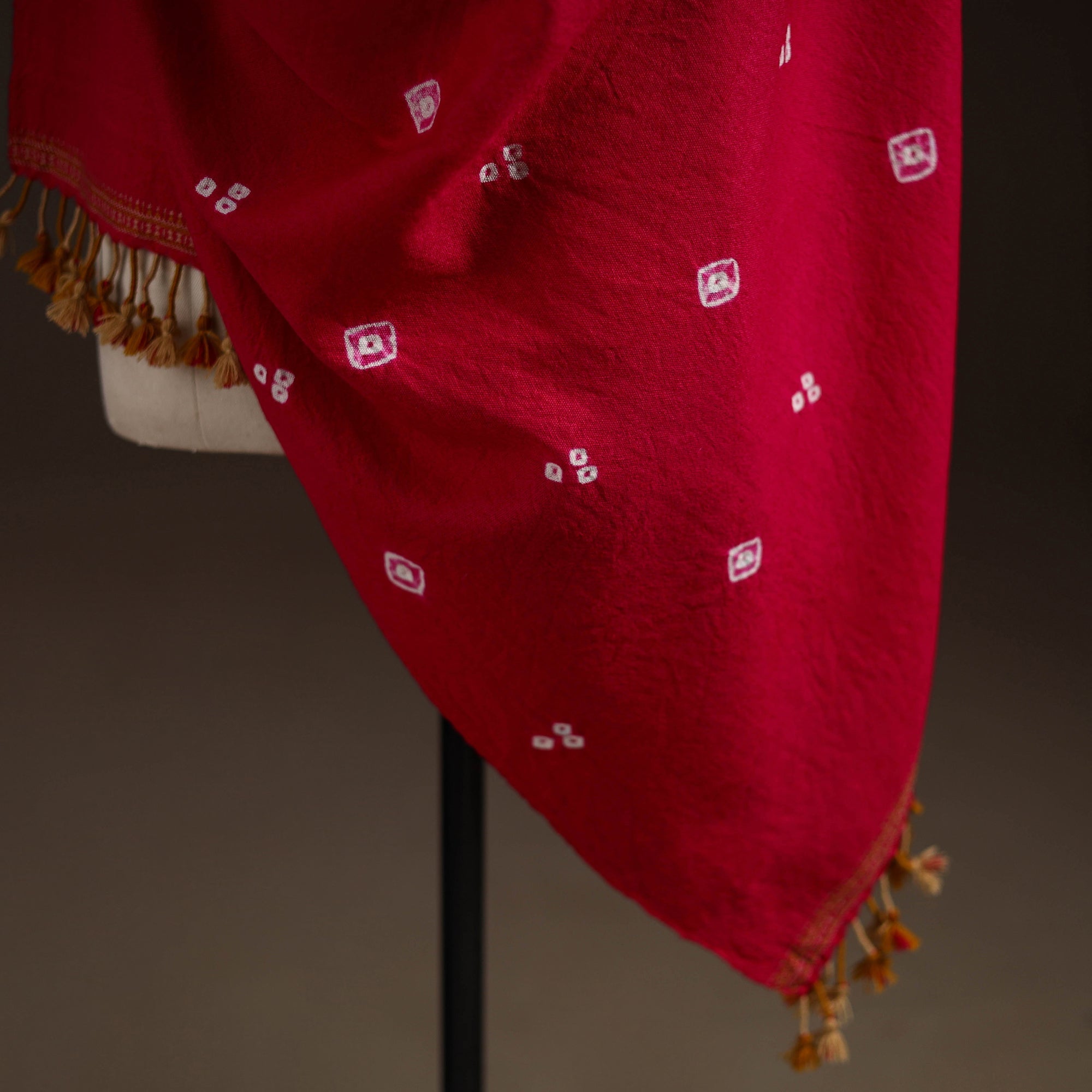 Red - Kutch Handwoven Merino Wool Tie-Dye Bandhani Shawl 08