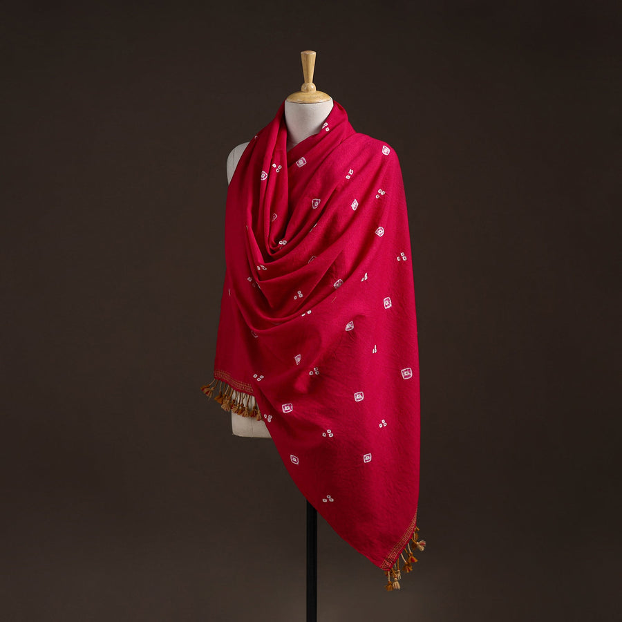 Red - Kutch Handwoven Bandhani Merino Wool Shawl 11