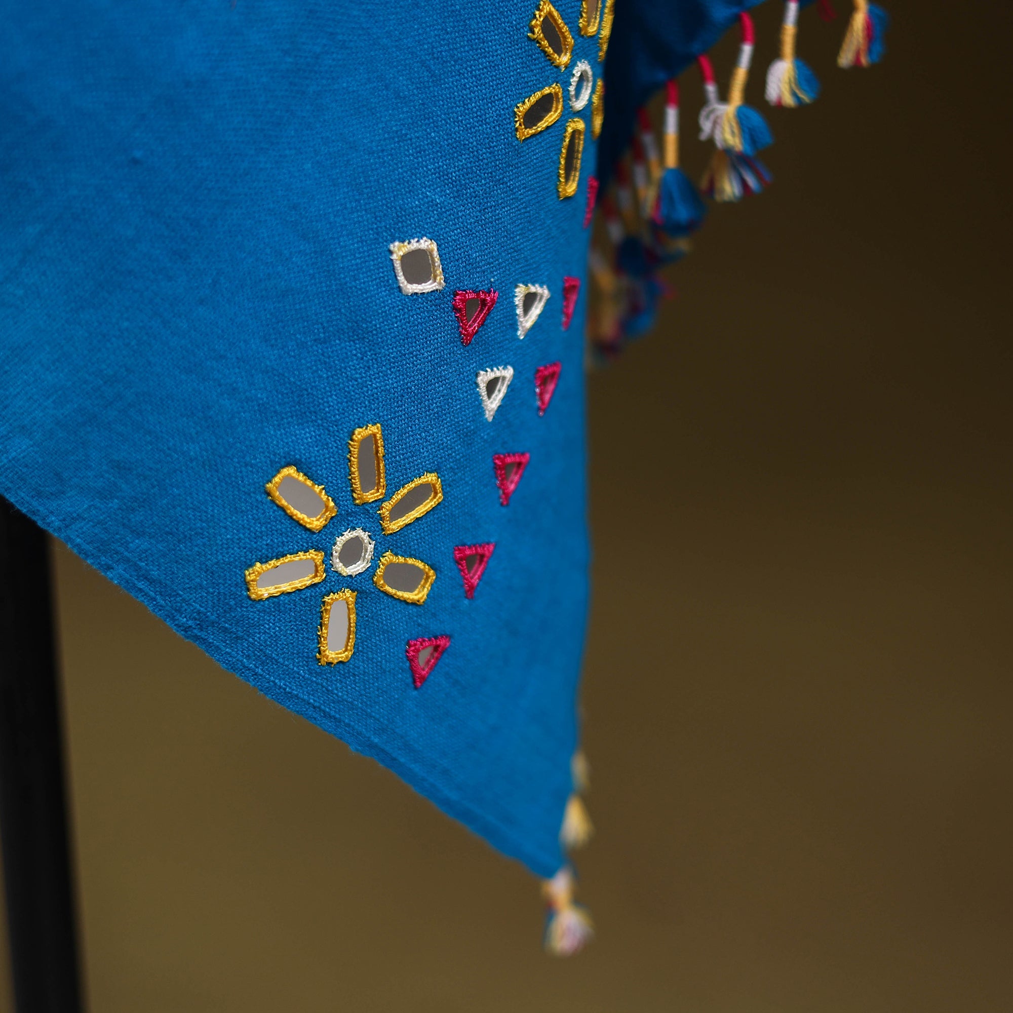 • Blue - kutch handwoven mirror work acrylic wool shawl 141