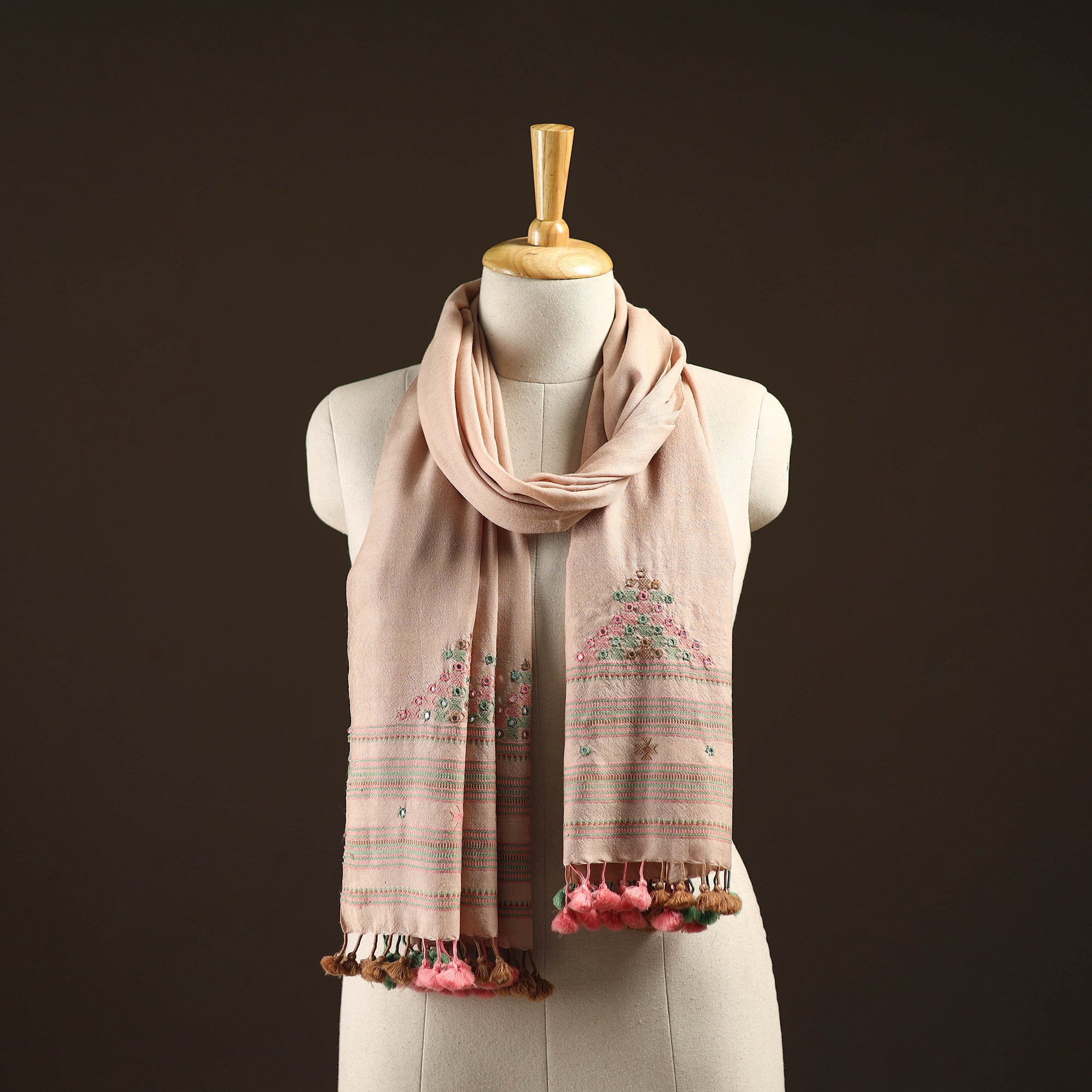 Handwoven stole with tassels crafted by Vankar Bhimji Kanji from Kutch. Adorned with mirror work and hand embroidery techniques rooted in Kutch’s cultural traditions. Crafted from merino wool, it offers dependable warmth, perfect for chilly days. Ideal for everyday use, travel, thoughtful gifting or adding an artisanal flair to your special outfits.