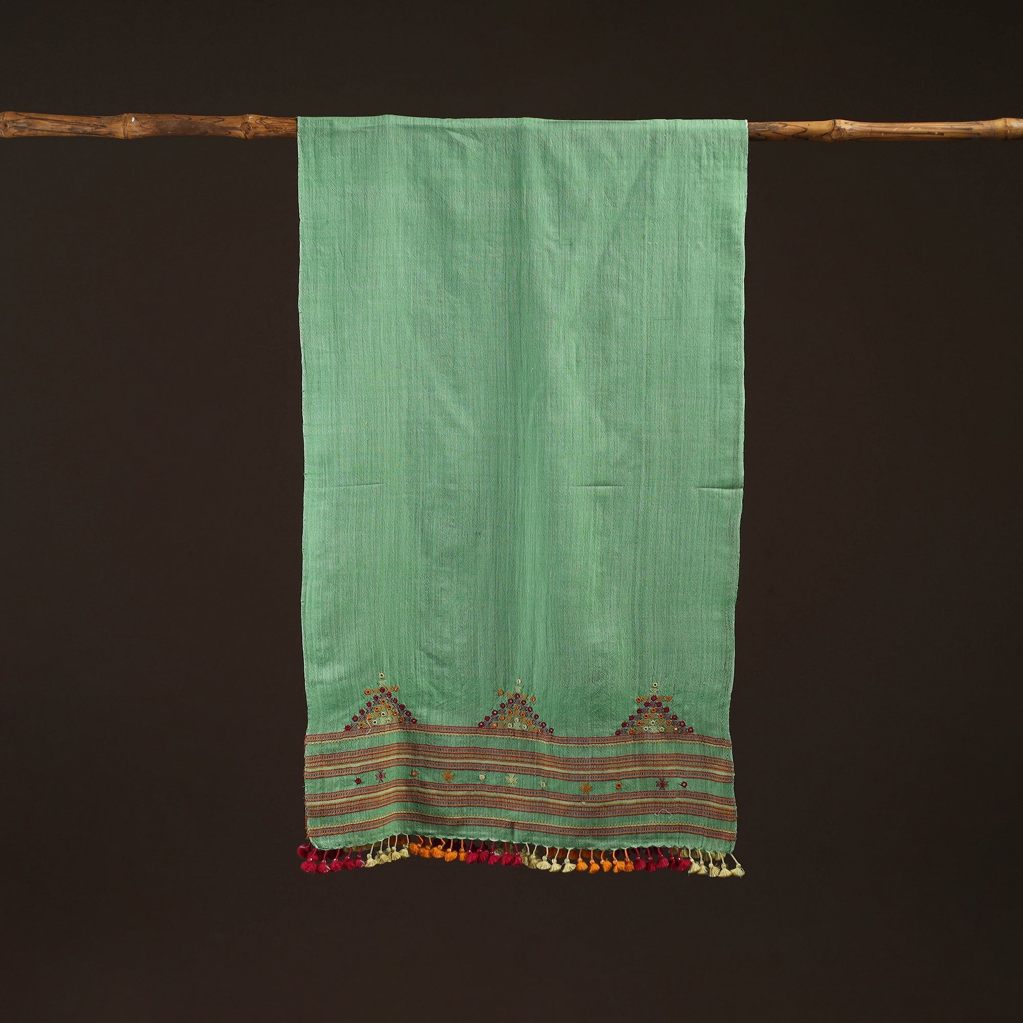 Green - Kutch Handwoven Mirror Work Merino Wool Embroidered Stole 27