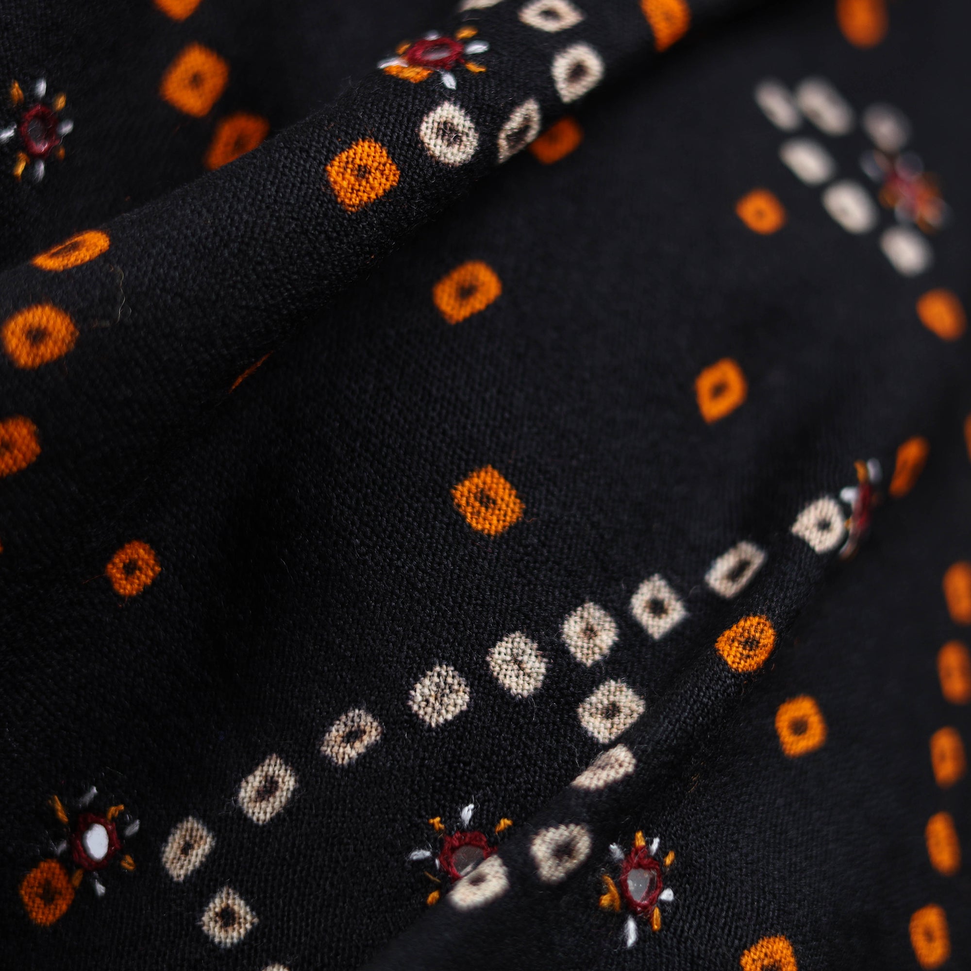 • Kutch mirror work handwoven bandhani bagida merino wool