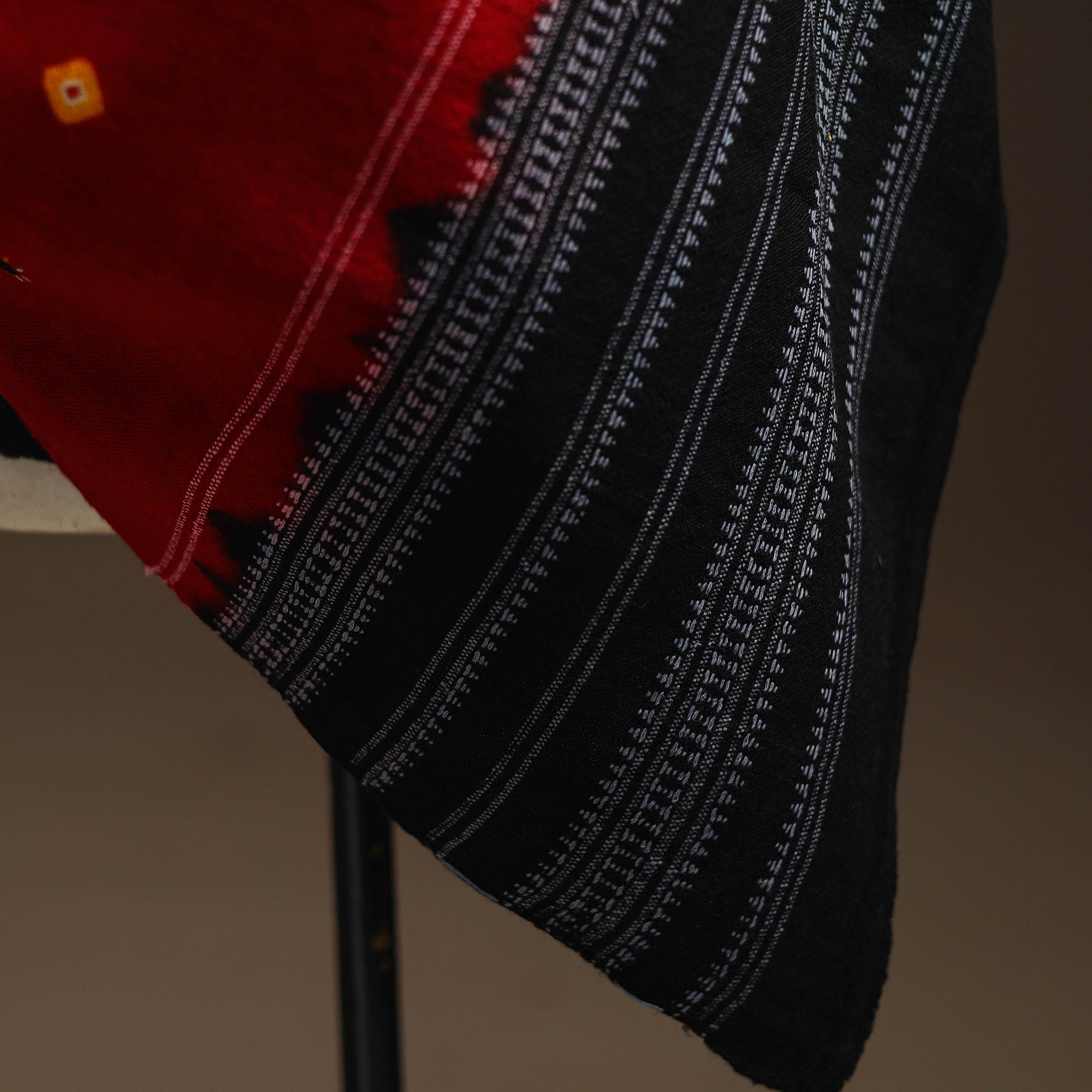 Red handwoven bandhani tie-dye hand embroidery bagida woolen shawl features intricate mirror work and carries the artistry of Kutch, Gujarat. Crafted by skilled artisans under the renowned Vankar Bhimji Kanji, it blends traditional charm with a contemporary feel. It adds a graceful touch to your everyday look or festive ensemble and also offers comforting warmth, making it a lovely choice for chilly days.
