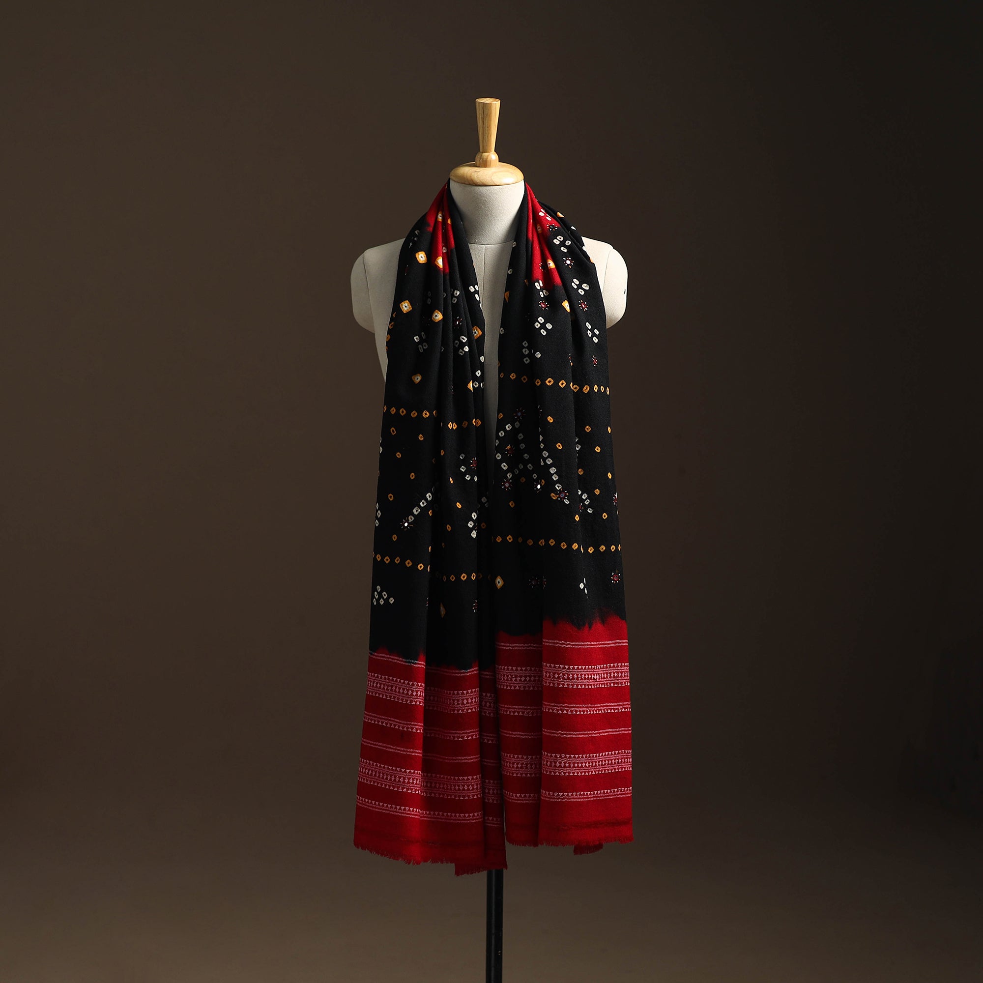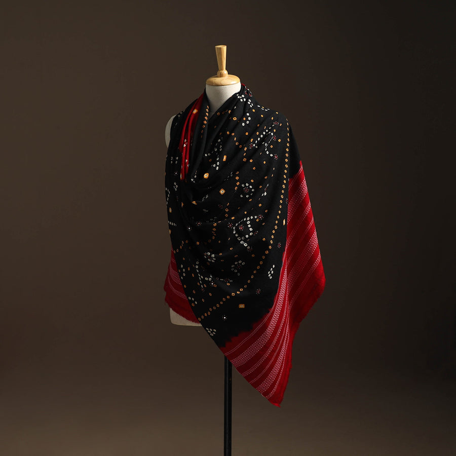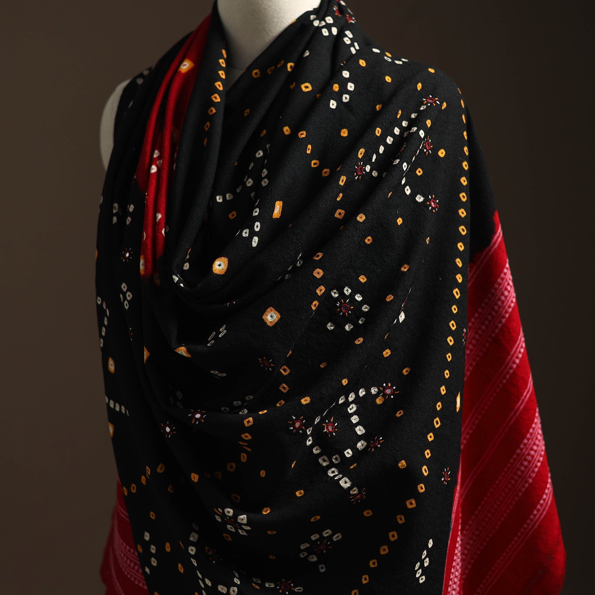 Black - Kutch Mirror Work Handwoven Bandhani Bagida Woolen Shawl 21