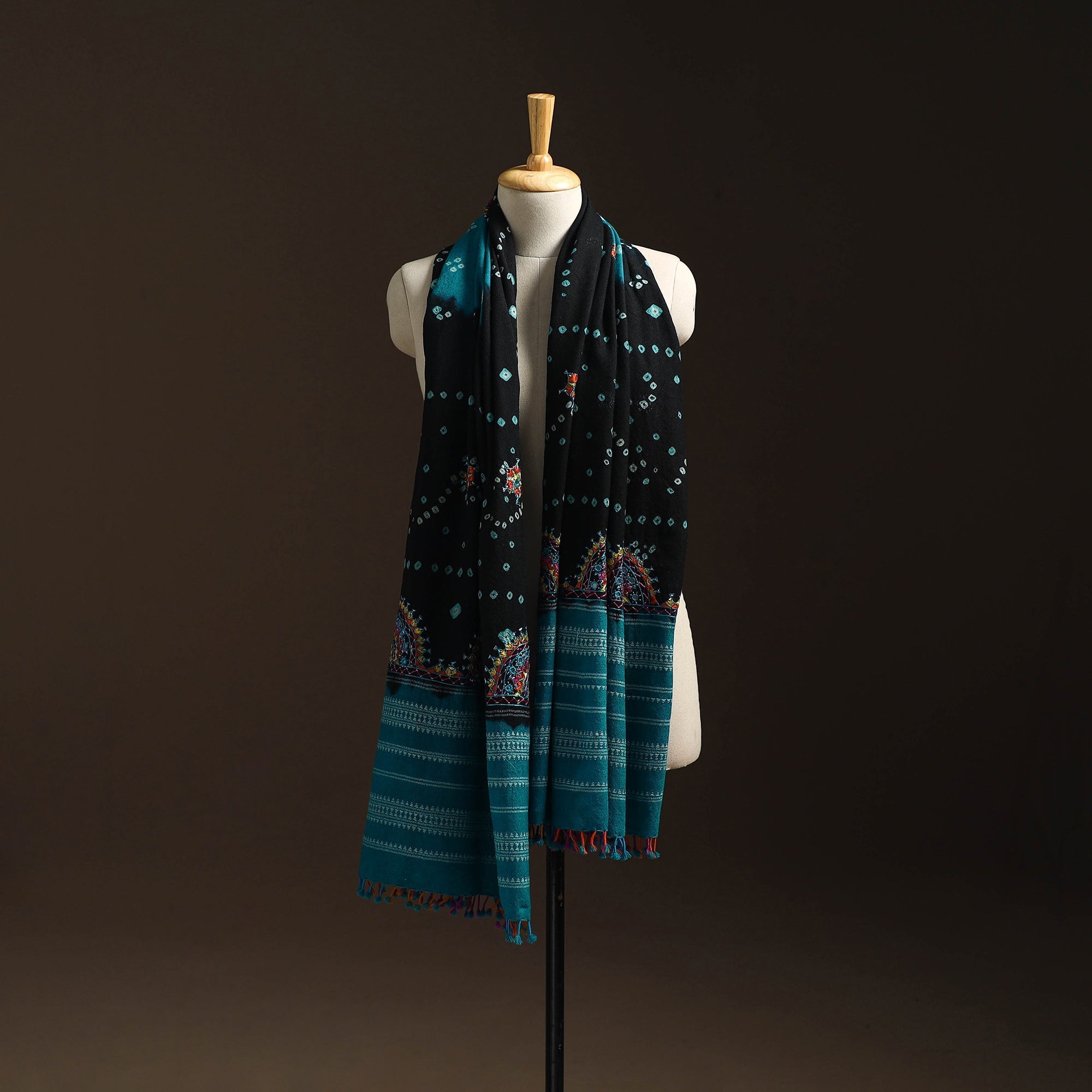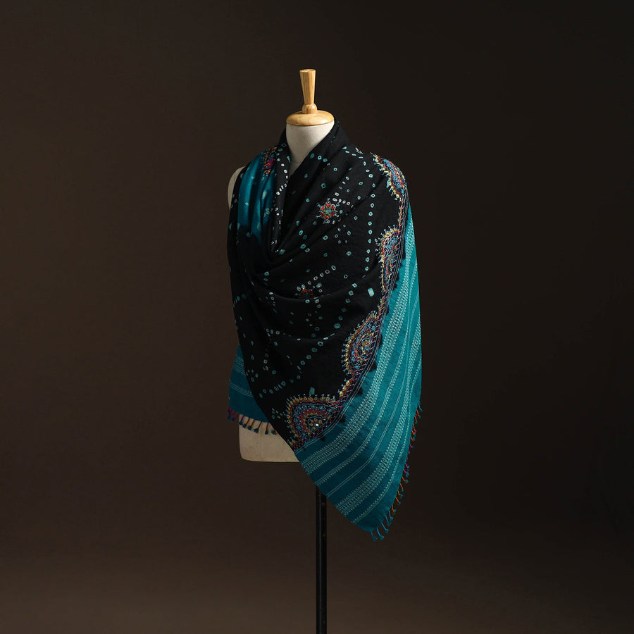 | Material | Black handwoven bandhani tie-dye neran hand embroidery acrylic fine woolen shawl features intricate mirror work and tassels and carries the artistry of Kutch, Gujarat. Crafted skilled artisans by Vankar Bhimji Kanji, it blends traditional charm with a contemporary feel. It adds a graceful touch to your everyday look or festive ensemble and also offers comforting warmth, making it a lovely choice for chilly days. Note : This piece carries tiny knots, thread pulls or uneven lines not flaws but fingerprints. Every irregularity is a whisper from the hands that made it. It’s what happens when tradition weaves through time, not machines. If you’re looking for perfection, this isn’t it. But if you’re looking for soul you’ve found it. |