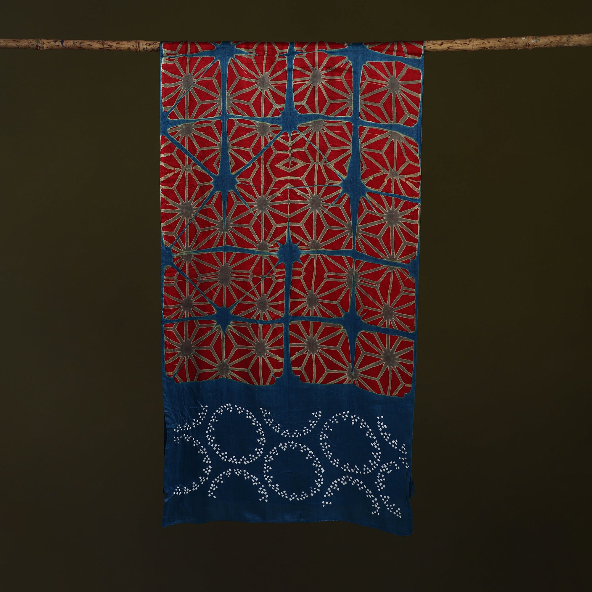 Traditional kutch bandhani modal silk stole is dyed using the clamp method, where the fabric is folded into geometric shapes such as squares or triangles and tightly secured between wooden blocks before dyeing. The clamped areas resist the dye, creating distinct and unique patterns. This stole is crafted by Kutch artisan Khatri Faiz Abdul Gafur. Made from modal silk, the stole features a smooth surface and a graceful drape. Bandhani is a time honoured practice, tracing back over 5,000 years. Lightweight and versatile, this stole pairs beautifully with both ethnic and contemporary outfits.