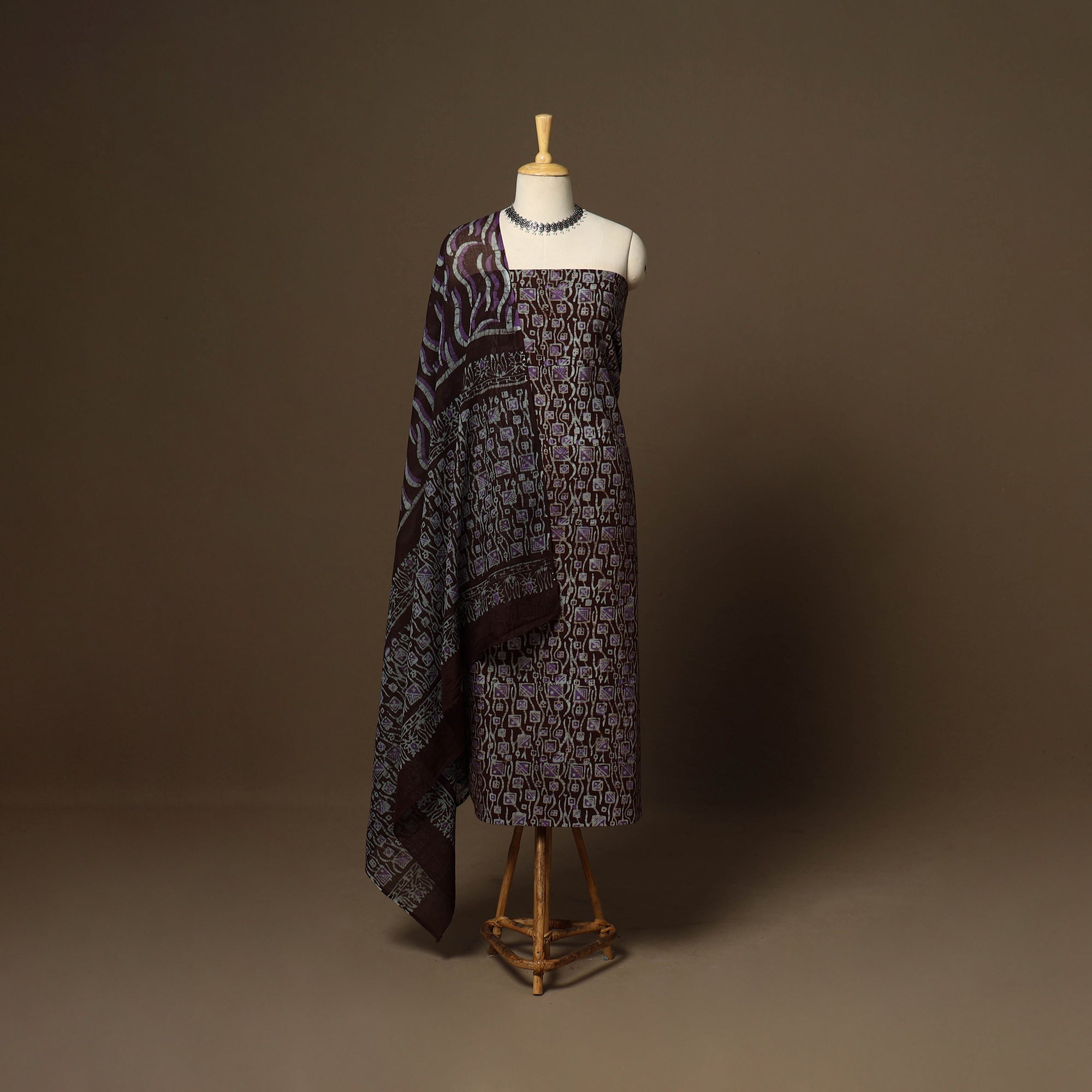 Experience the beauty of batik with this maroon kutch print cotton 3pc batik dress material. Crafted using traditional wax-resistant dyeing techniques by skilled artisans. This dress material reflects India’s rich textile heritage.