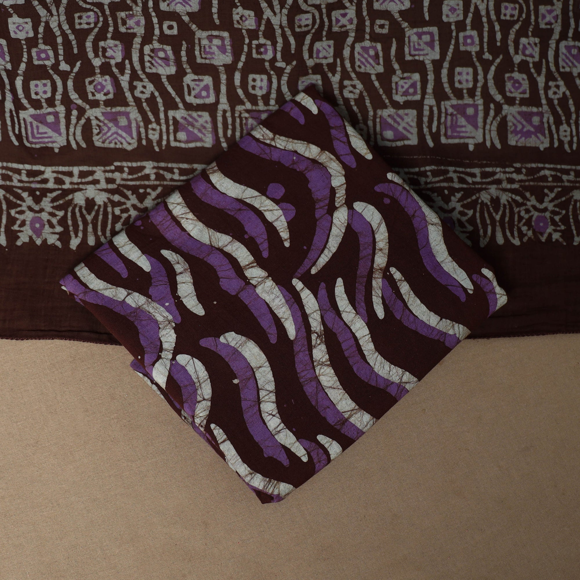 Batik is a very famous technique of wax-resist dyeing applied to whole cloth. The traditional designs and motifs in Indian batik are exceptional. It is a type of resist printing process wherein wax is applied to the fabric in specific areas.