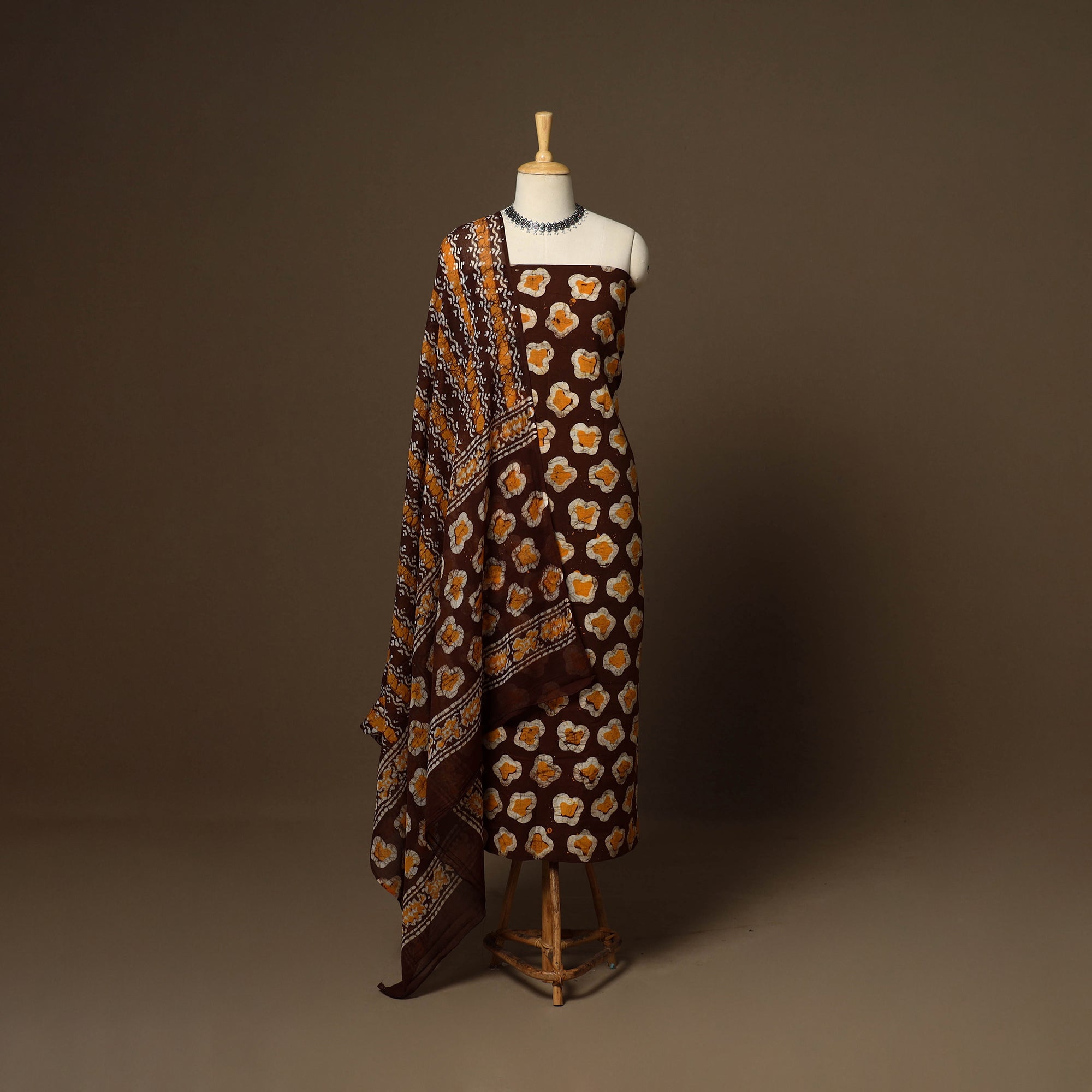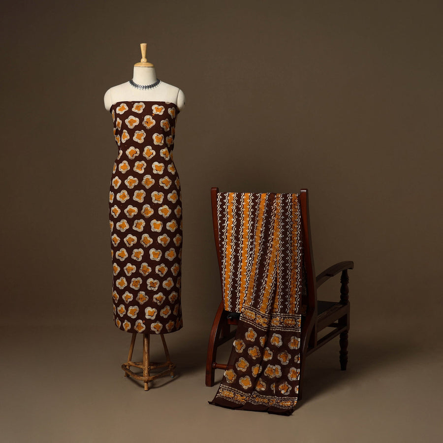 Experience the beauty of batik with this maroon kutch print cotton 3pc batik dress material. Crafted using traditional wax-resistant dyeing techniques by skilled artisans. This cotton suit material is perfect for creating elegant, comfortable outfits.
