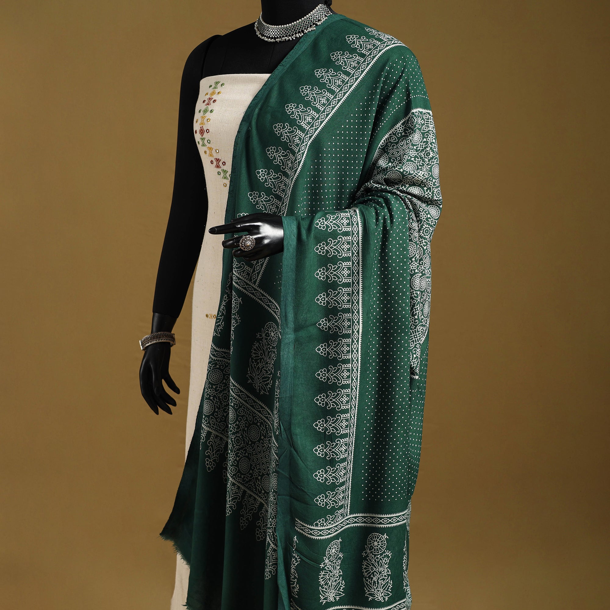 • Green - kutch printed rayon dupatta 02 - handcrafted