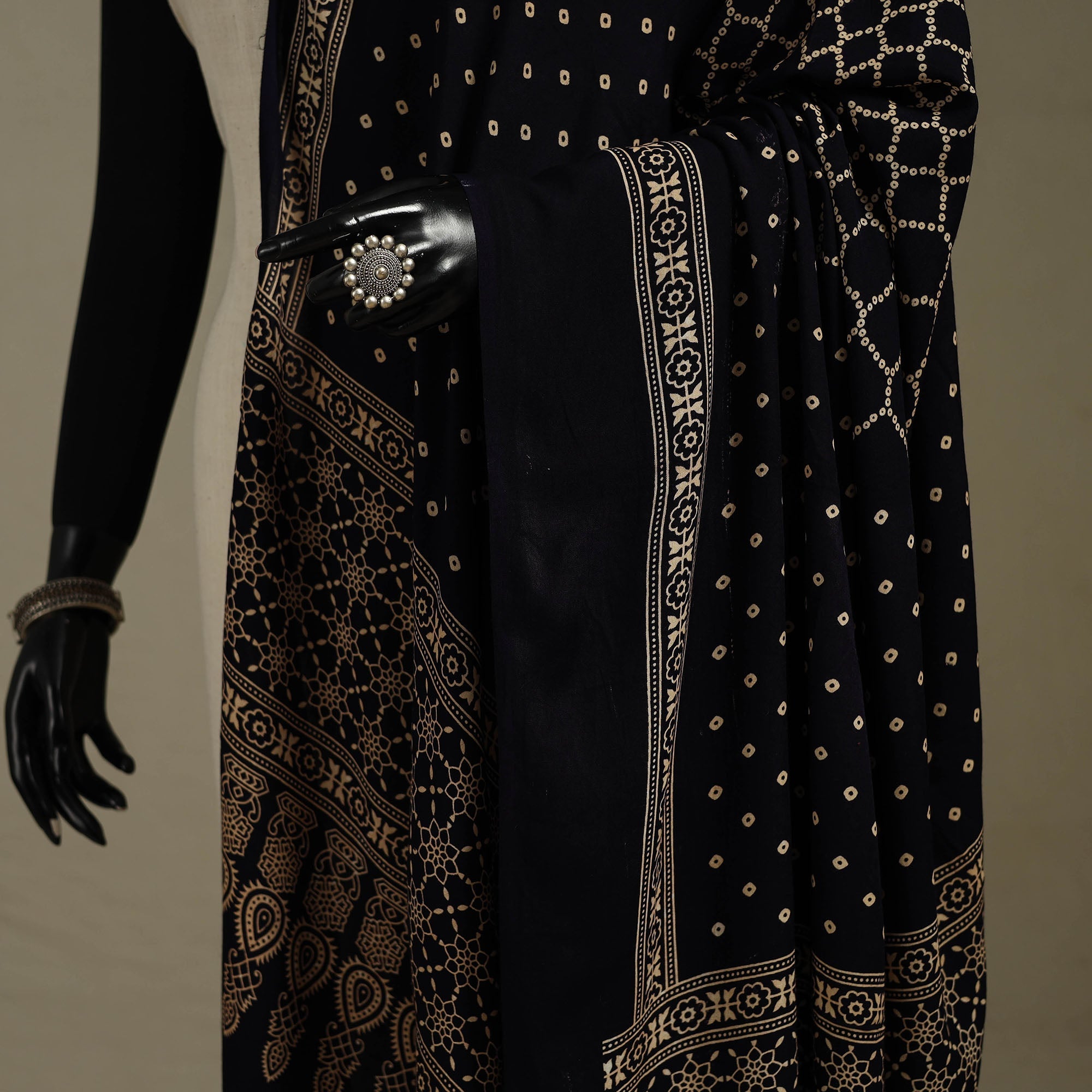 This screen printed dupatta with motifs inspired by the traditions of Gujarat’s Kutch region. Made from rayon fabric, it has a smooth, lustrous texture that feels elegant to wear. It drapes beautifully and suits all seasons. Style it with kurtas, flared skirts or salwar suits. A versatile dupatta suited for festive and cultural occasions.