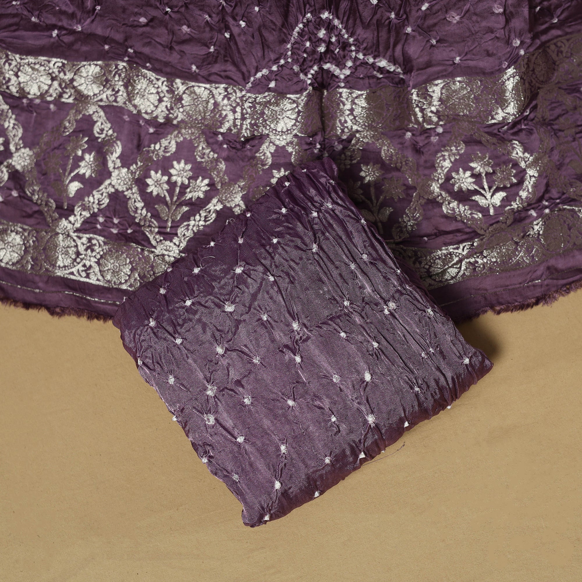 Purple - Kutch Tie-Dye Bandhani Modal Silk Meenakari Zari Work 3pc Unstitched Dress Material 35